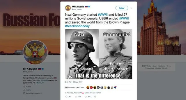 У День пам'яті жертв сталінізму та нацизму, який відзначають у Європі, російське МЗС опублікувало на своїй сторінці у Twitter картинку, яка мала показати різницю між нацистською Німеччиною та СРСР.