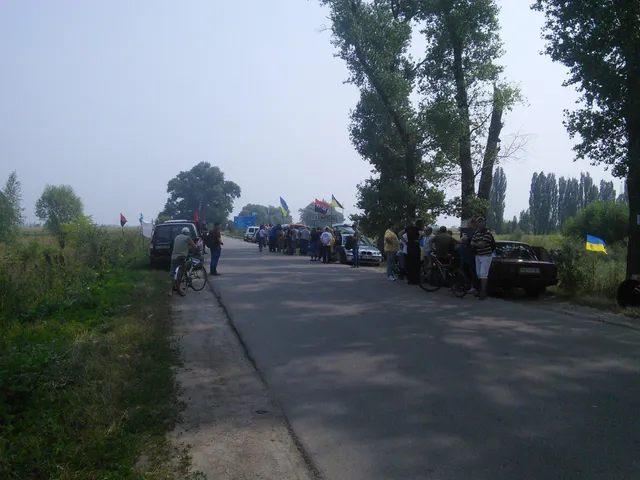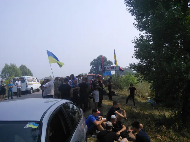 На в'їзді у місто зібралось близько 100-150 чоловік. На місце приїхали три буси правоохоронців та кілька патрулів.