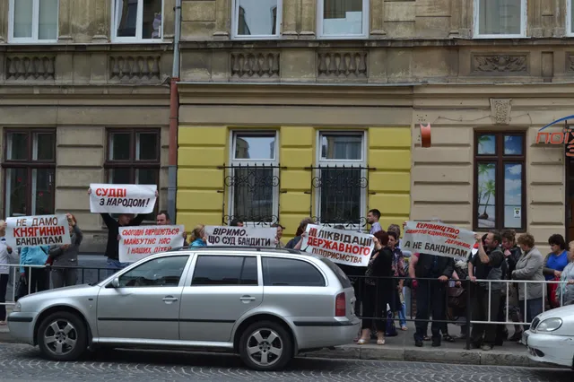 Працівники Івано-Франківського обласного державного об’єднання спиртової та лікеро-горілчаної промисловості прийшли під стіни суду з пікетом і вимогами не допустити ліквідації підприємства та звільнення працівників. Обурені робітники тримали в руках плакати з написами "Не дамо "Княгинин" бандитам», "Керівництво спиртоб’єднанням – державі, а не бандитам".