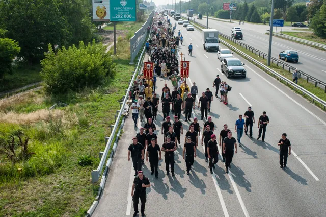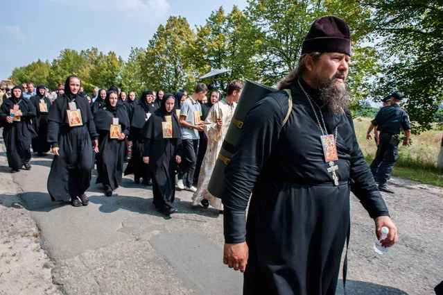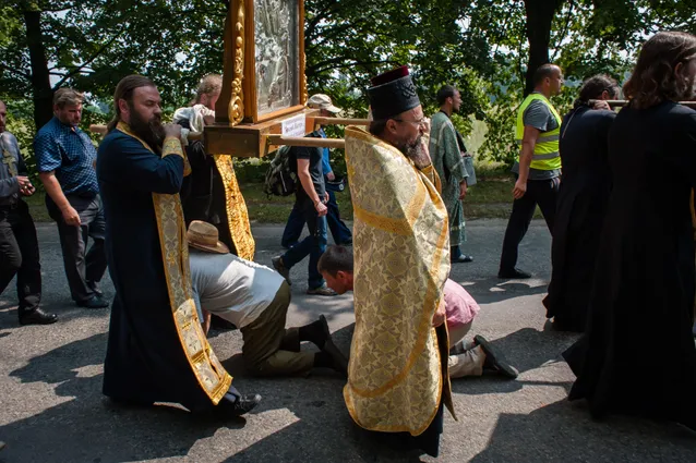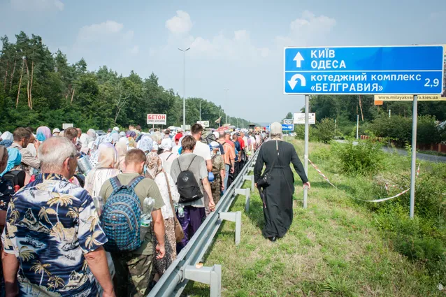 Православные идут на Киев. "Крестный ход за мир и прекращение войны на Донбассе" был организован Украинской православной церковью Московского патриархата с востока и запада Украины. Стартовали верующие 3 июля из Свято-Успенской Святогорской лавры (Донецкая область), 9 июля началось шествие из Почаевской лавры (Тернопольская область). Колонны, общая численность которых не превышает двух тысяч, движутся с запада и востока страны и должны встретиться в Киеве накануне Дня крещения Киевской Руси, который отмечается 28 июля. В крупных городах к шествию также привлекались местные жители.
