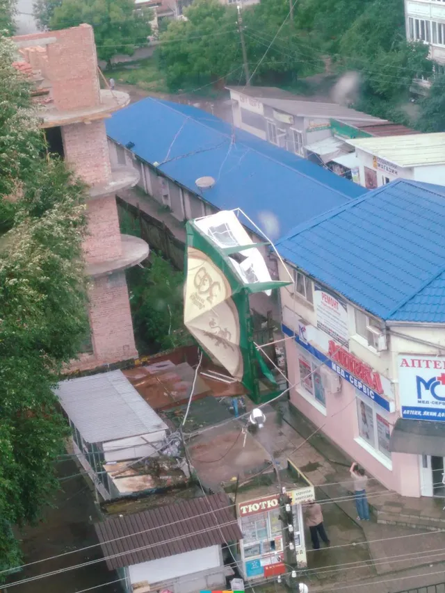 В общем непогода повредила 77 крыш жилых и хозяйственных построек, 15 административных зданий, 2 коммерческих здания, повалены 83 дерева.