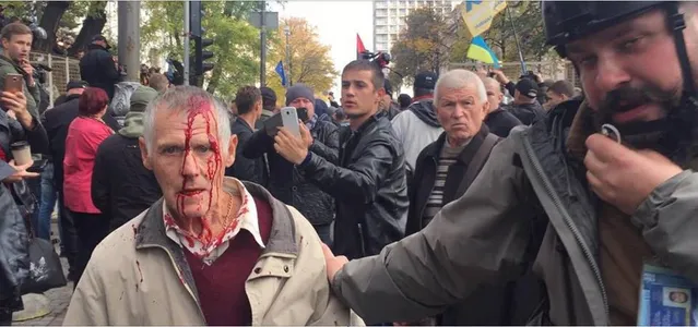 Як мінімум одного мітингувальника та правоохоронця забрали медики. У правоохоронця на лиці була кров, повідомляє "РБК-Україна".