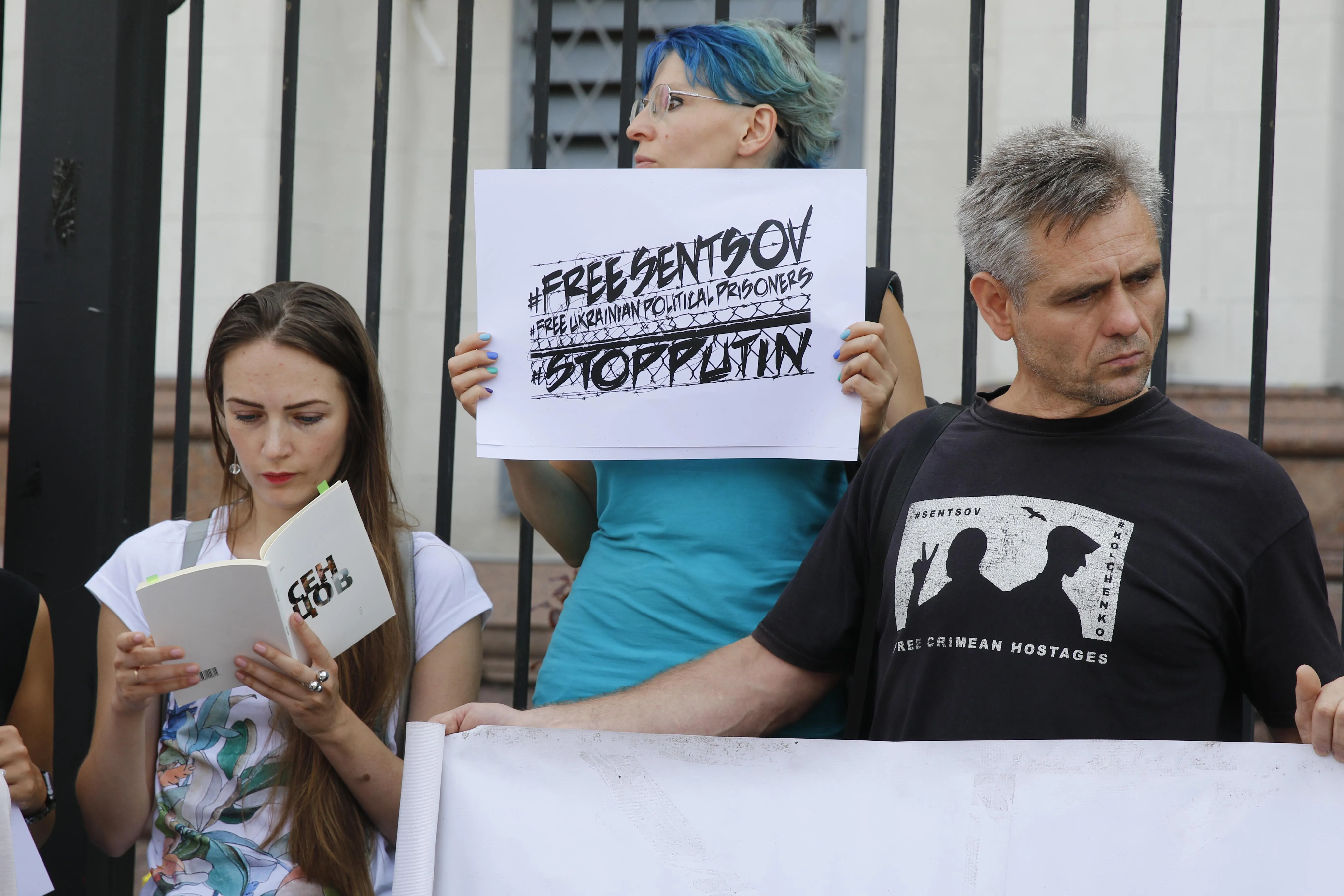 Наостанок активісти зачитали вголос оповідання Сенцова "Автобіографію" і "Заповіт".