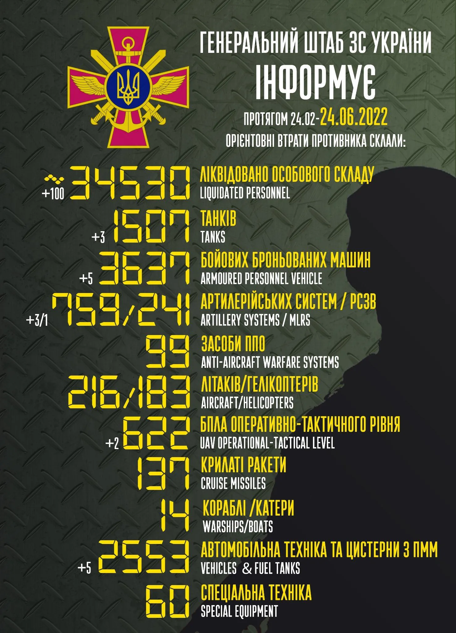 Актуальні втрати ворога станом на 24 червня / Інфографіка ЗСУ