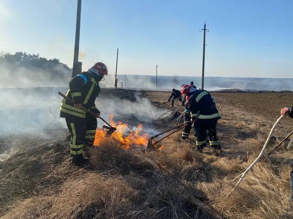 Гасять підпал трави / Фото телеграм Вінницька ОДА (ОВА)