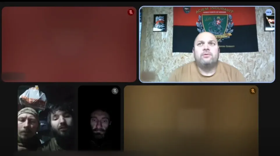 Командир 14 окремої механізованої бригади Тарас Максімов під час дзвінка з бійцями / Скриншот