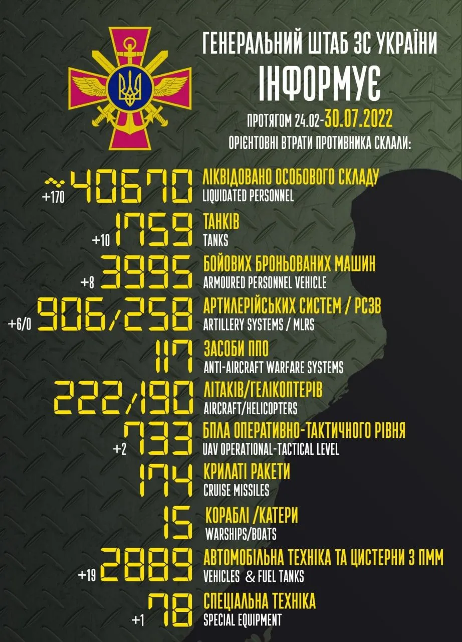 Втрати ворога / Інфографіка Генштабу ЗСУ