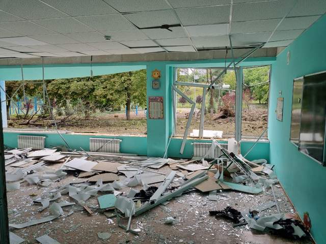 Обстріл школи в Очеретиному / Фото Павла Кириленка: