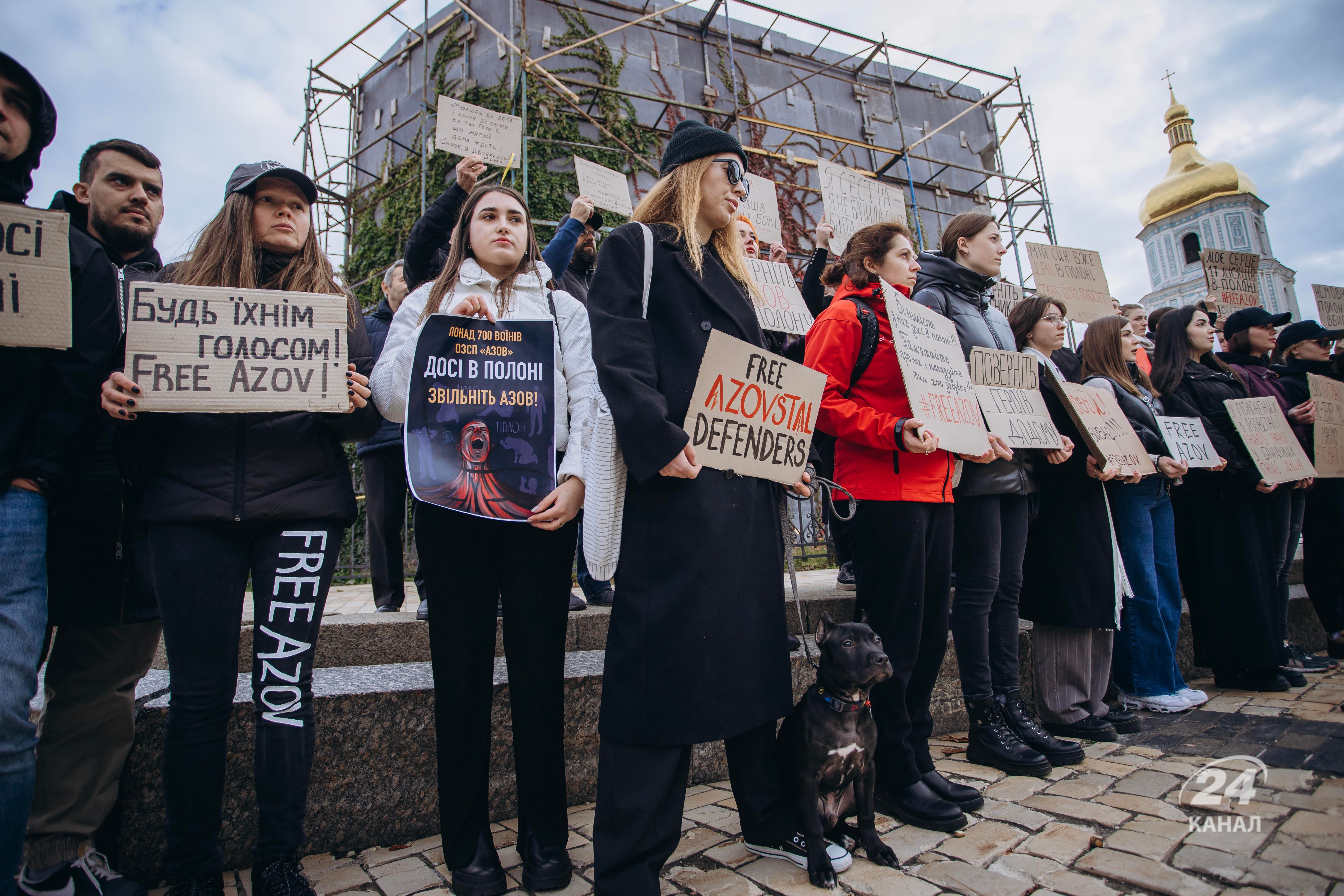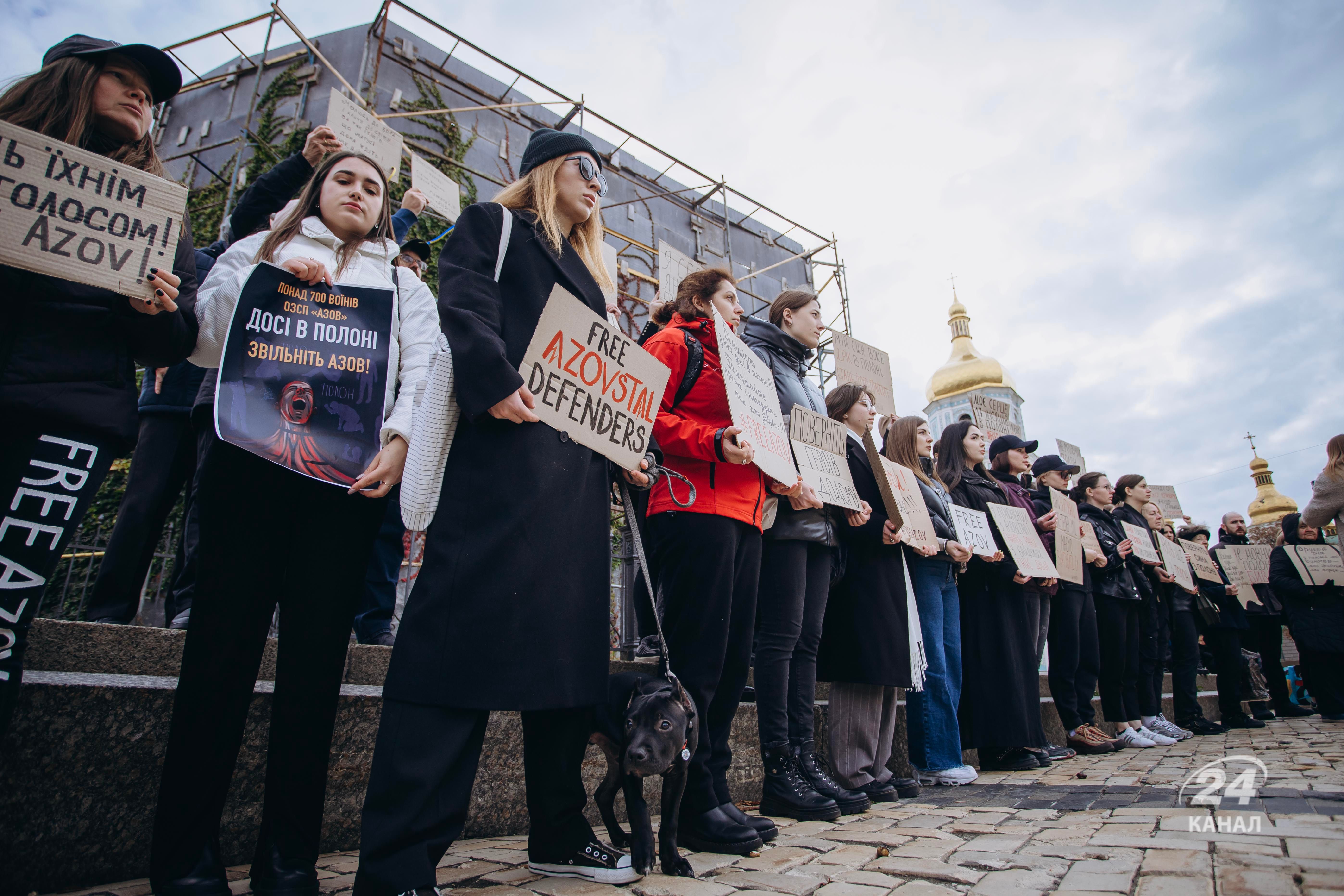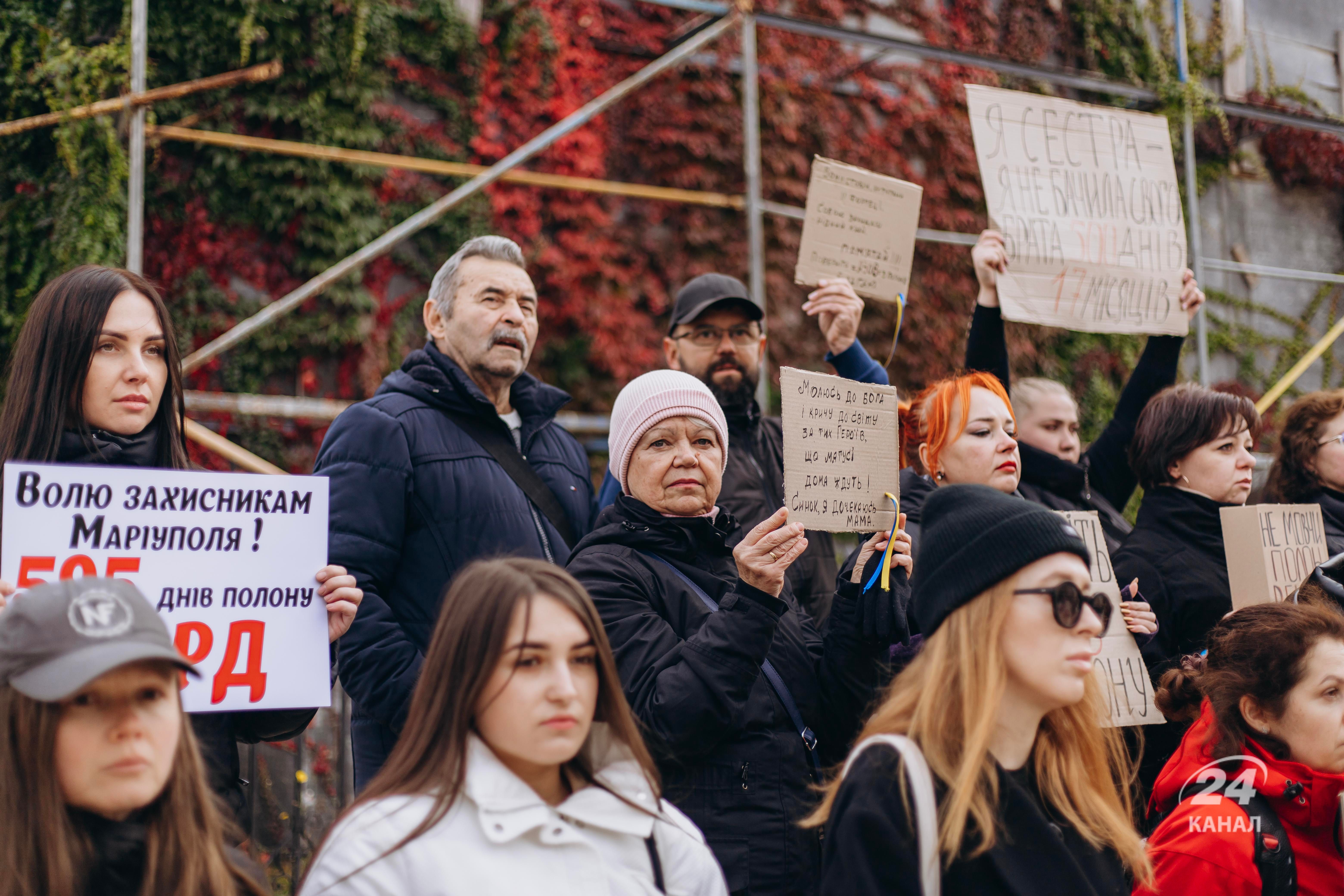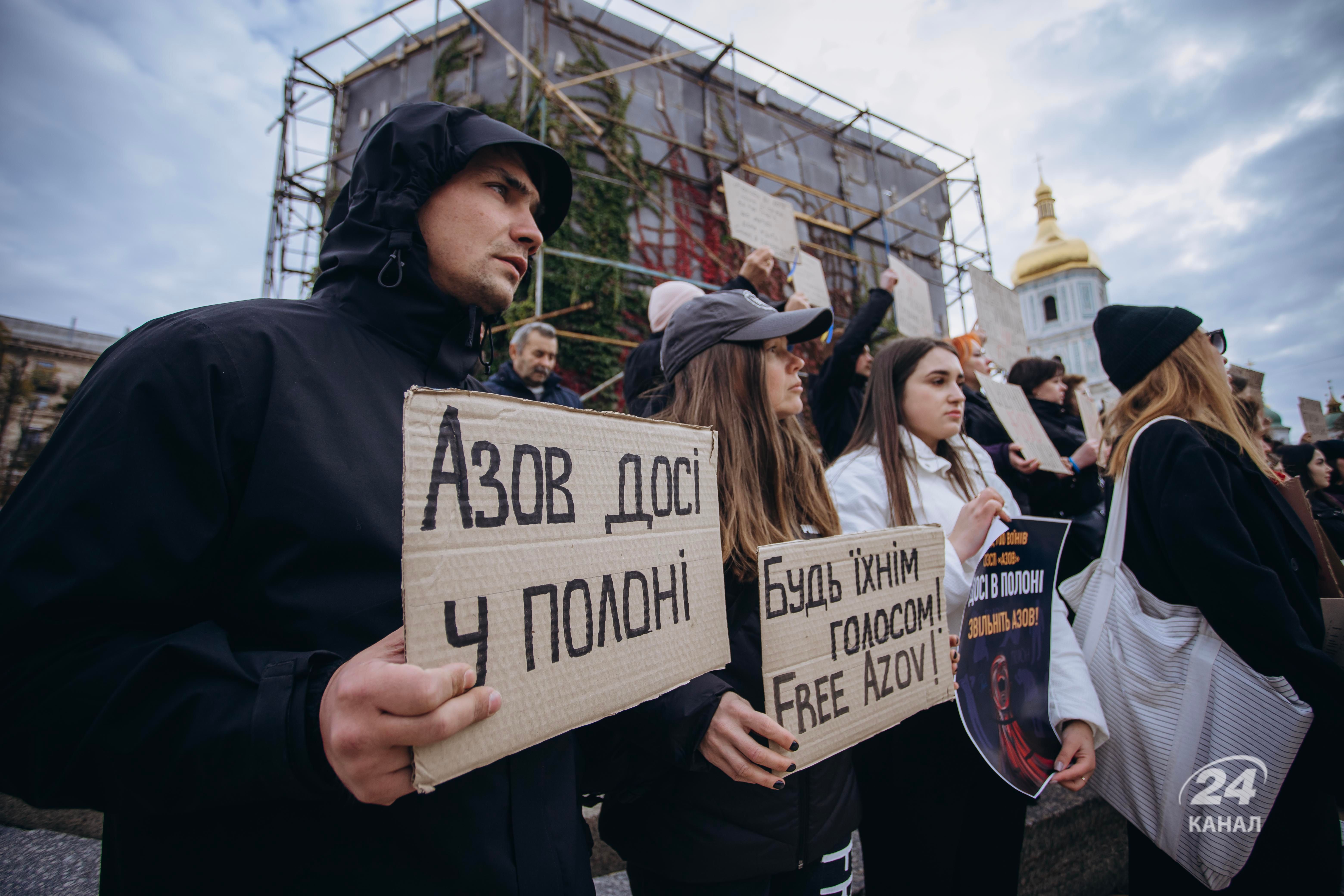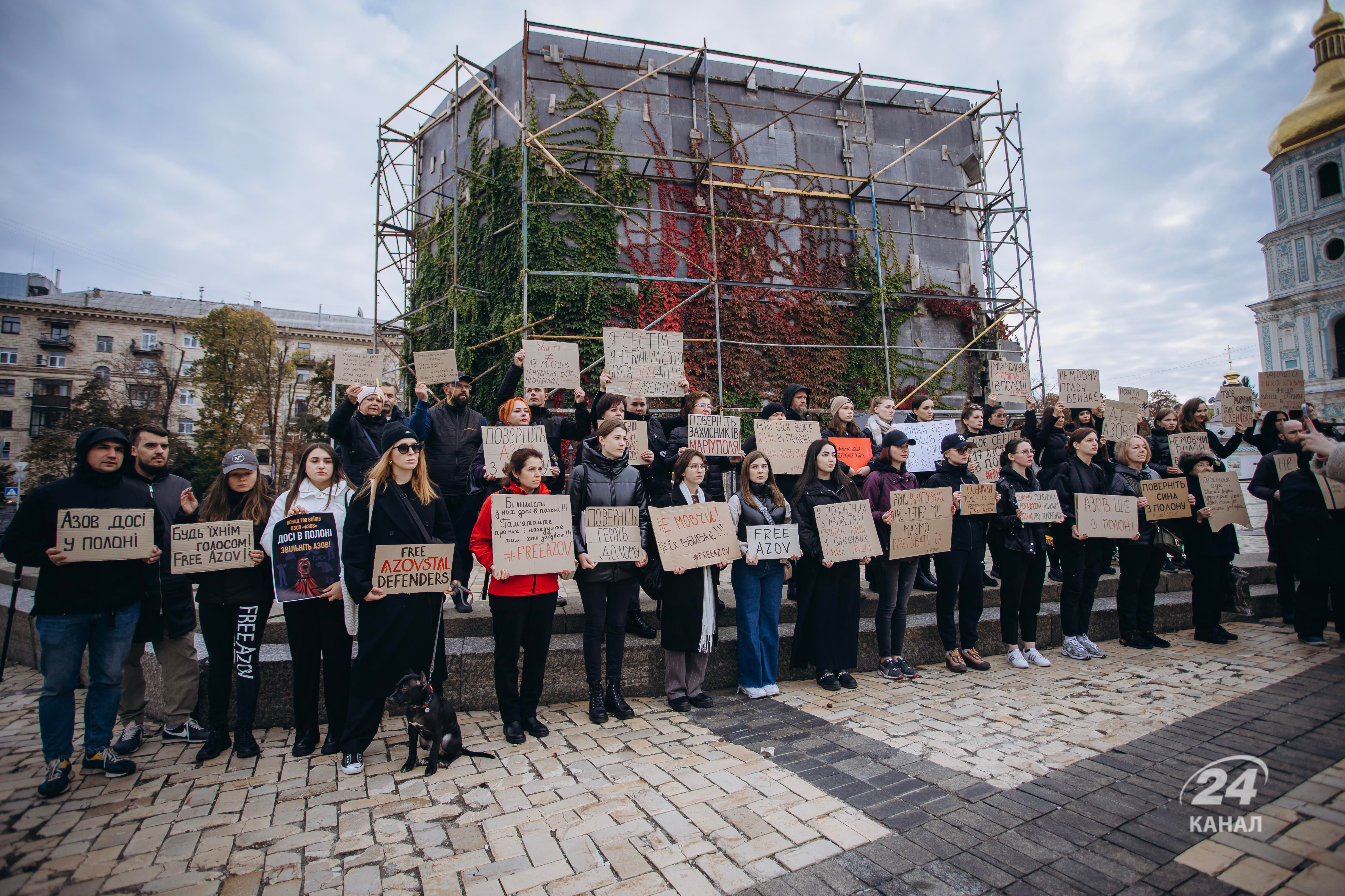 На цій акції були присутніми понад 50 активістів: батьки, сестри, діти та побратими полонених оборонців "Азовсталі". Усі вони стояли на Софіївській площі та тримали у руках плакати з різними написами: