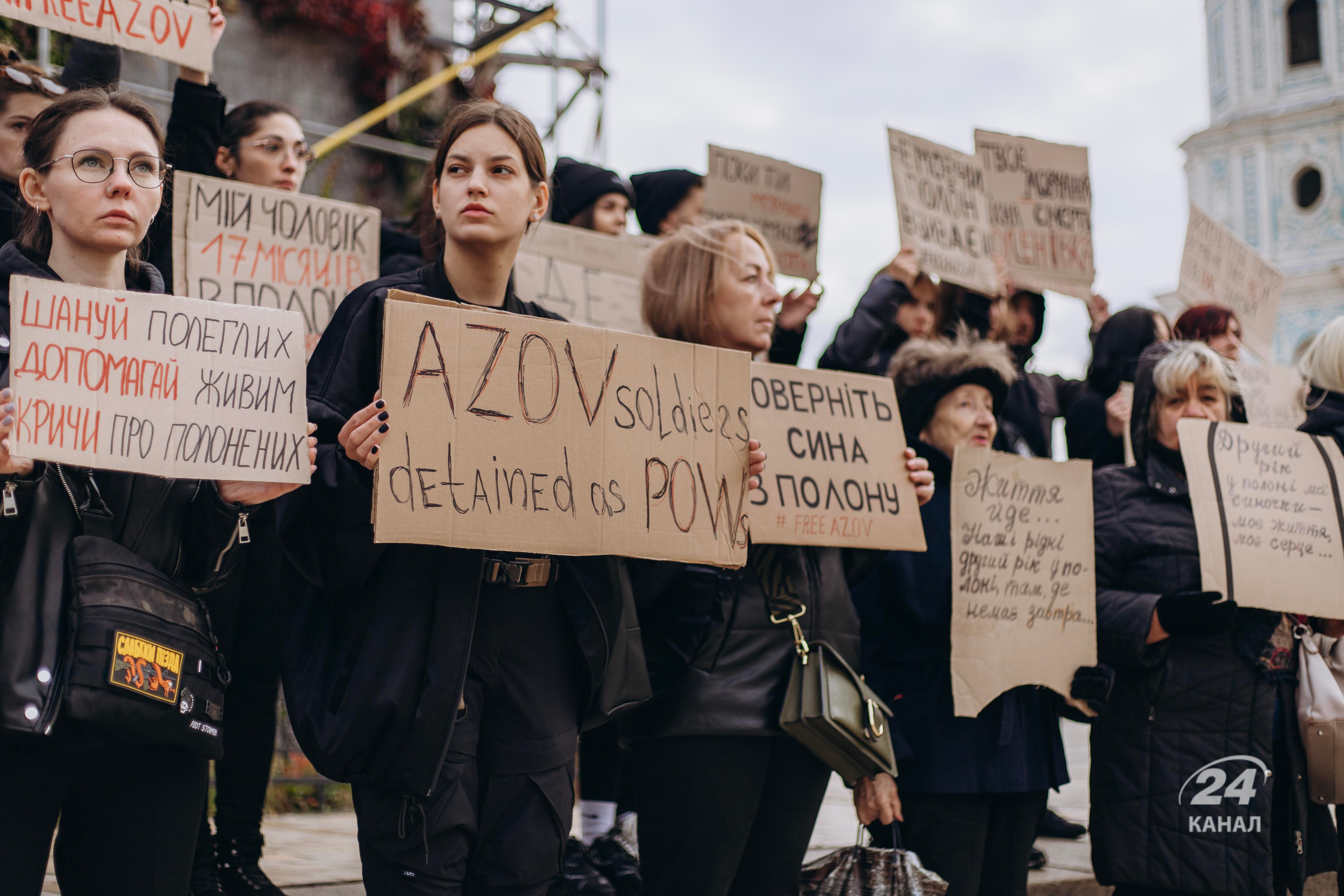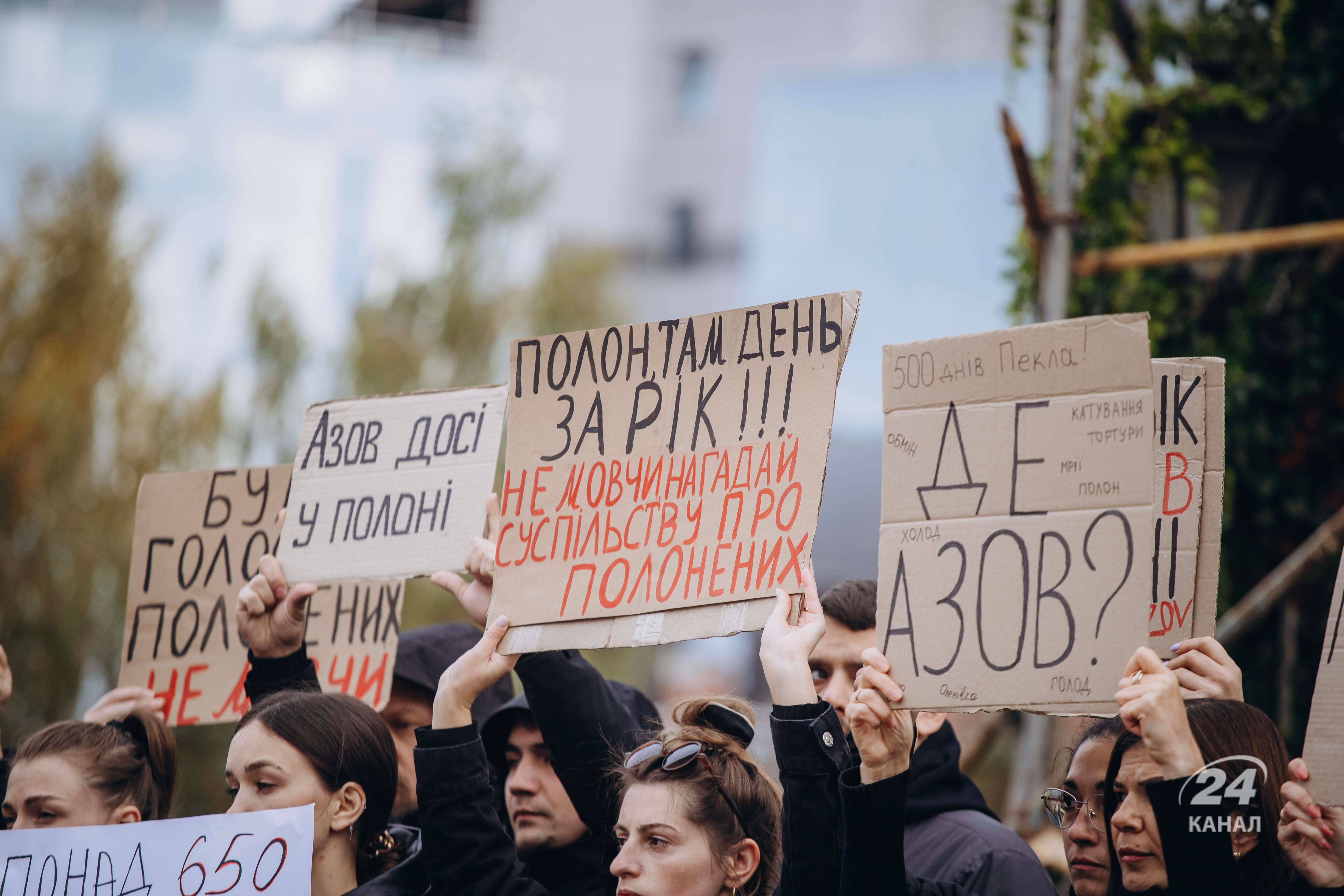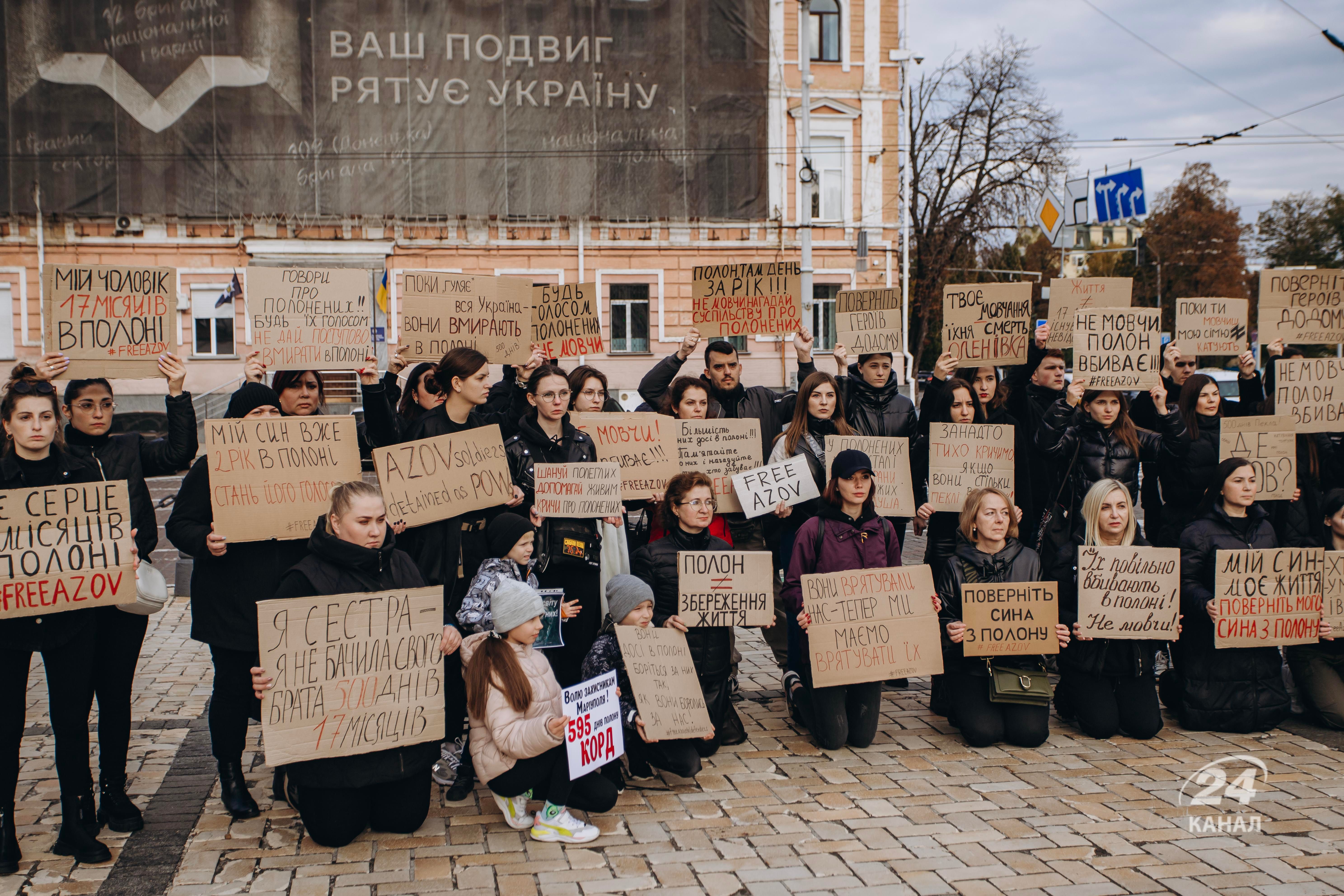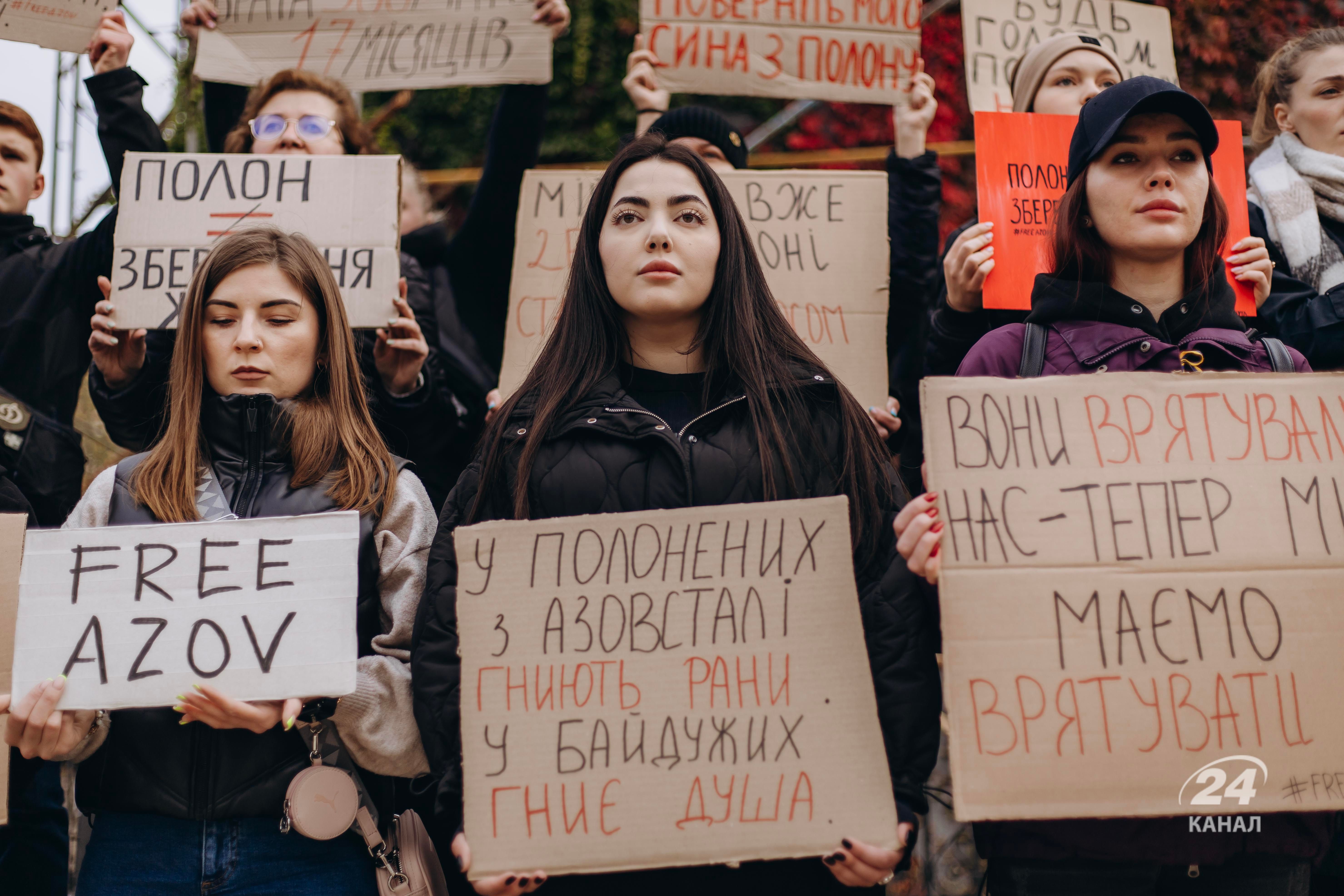 На цій акції були присутніми понад 50 активістів: батьки, сестри, діти та побратими полонених оборонців "Азовсталі". Усі вони стояли на Софіївській площі та тримали у руках плакати з різними написами: