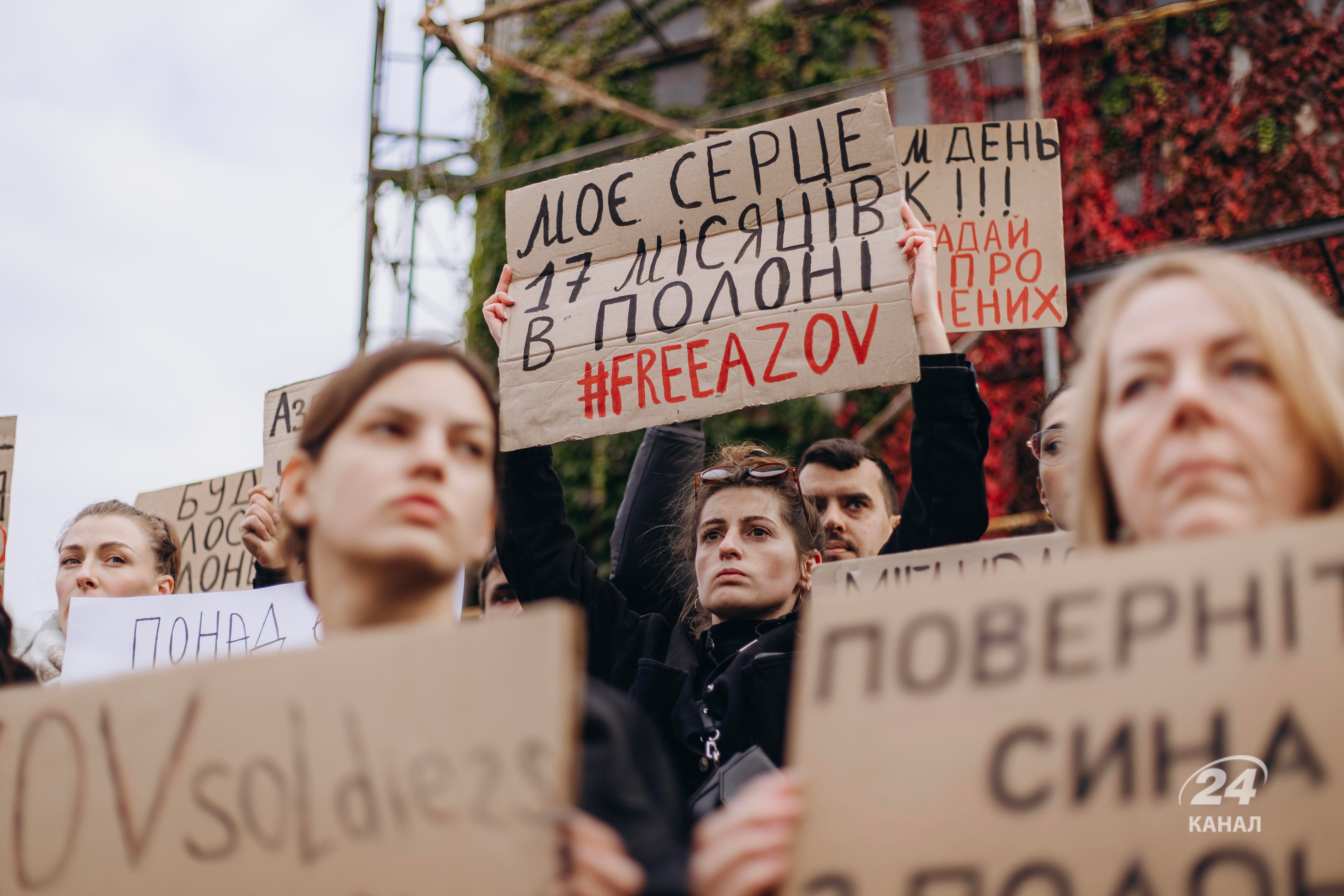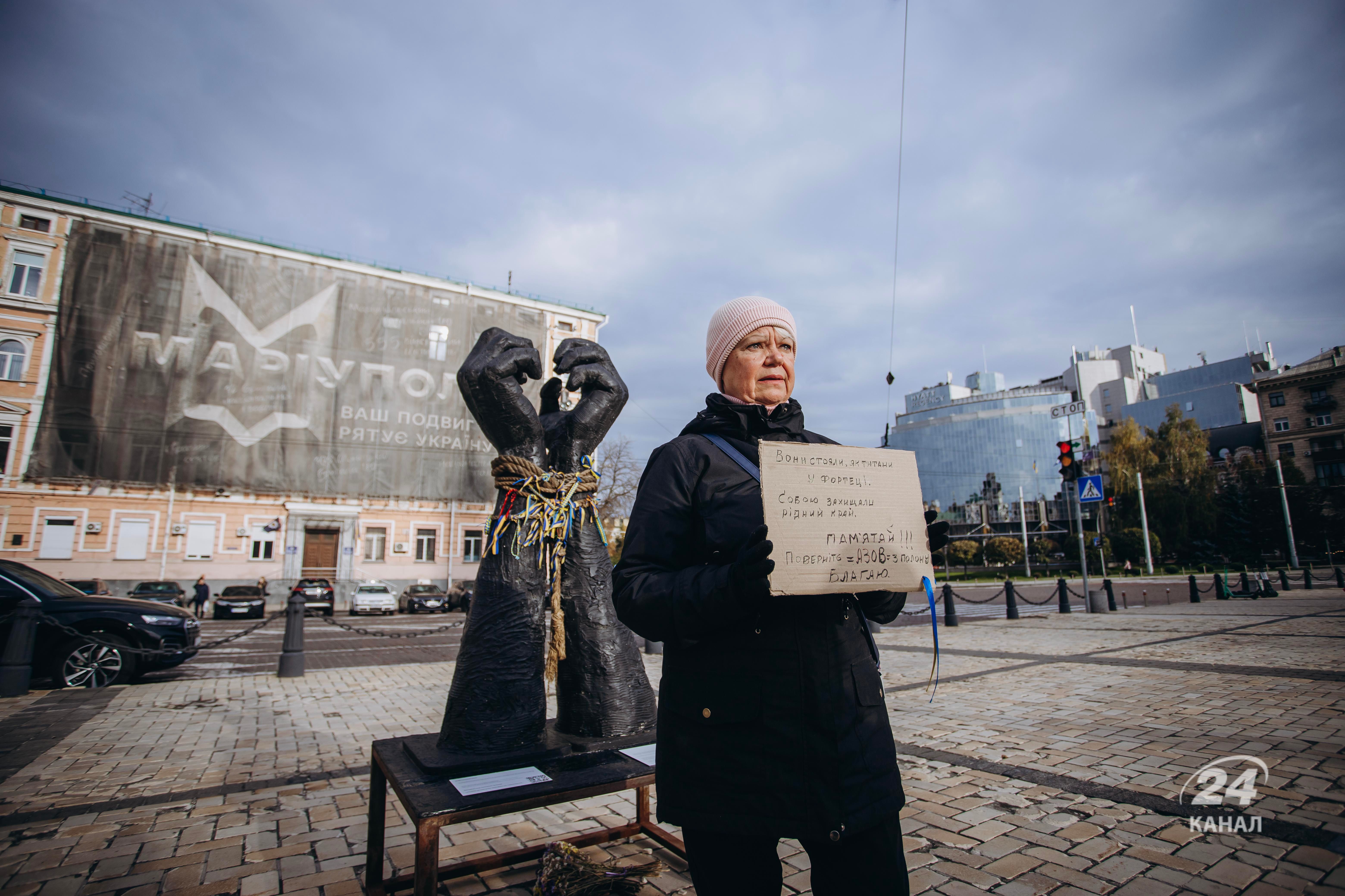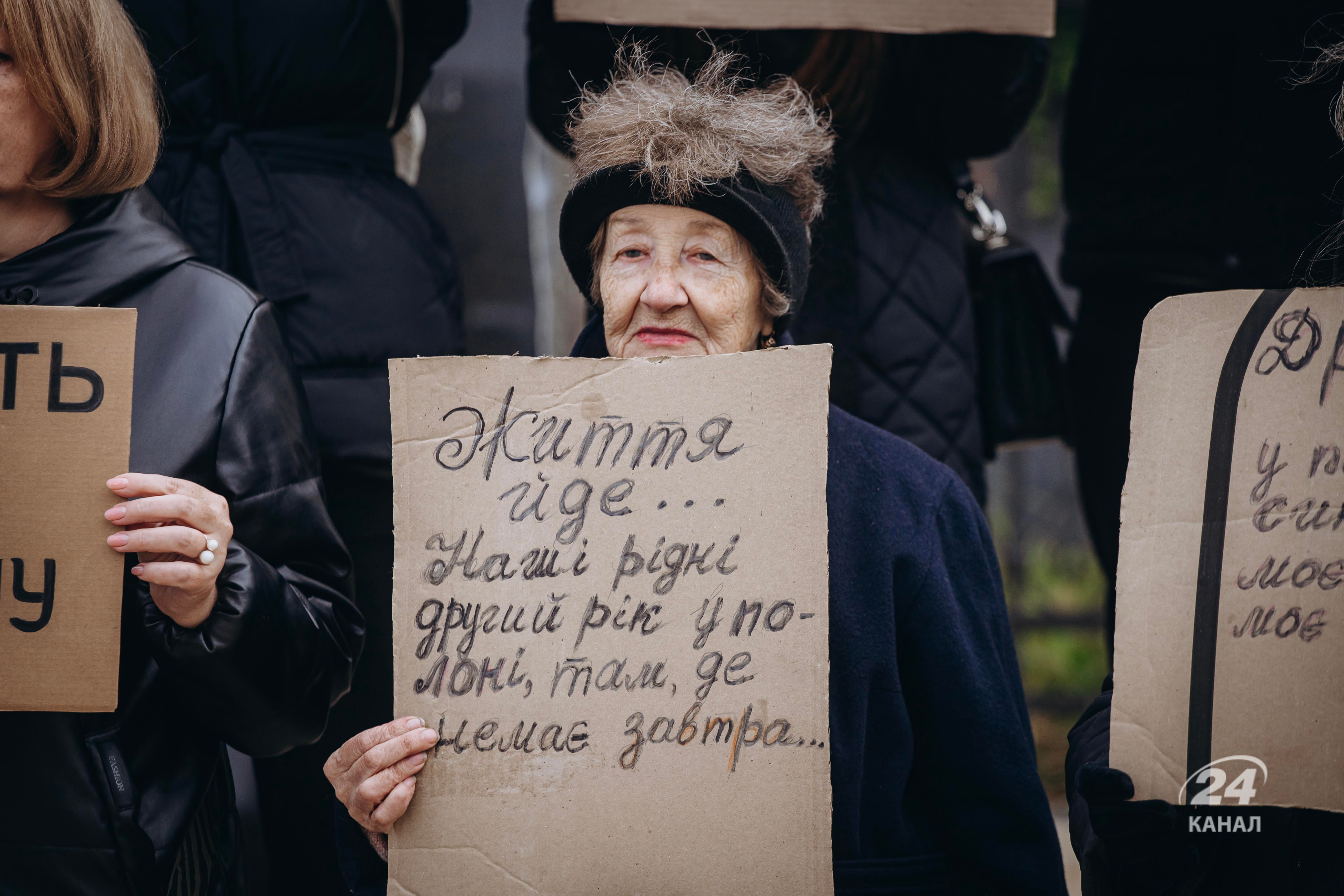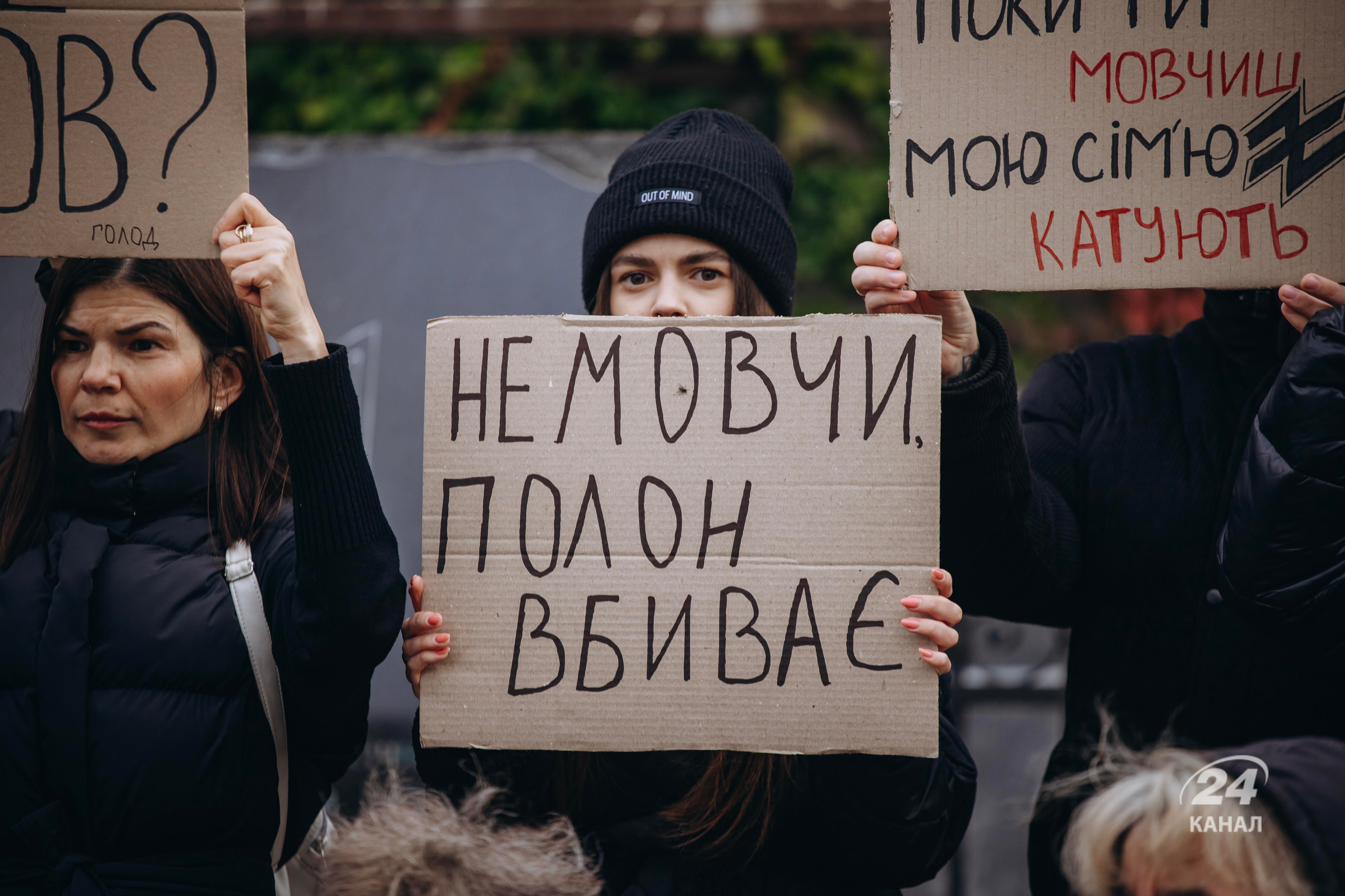 Рідні організували акцію "Будь голосом полонених. Твоє мовчання їх убиває" / Фото 24 Каналу, Валентина Поліщук