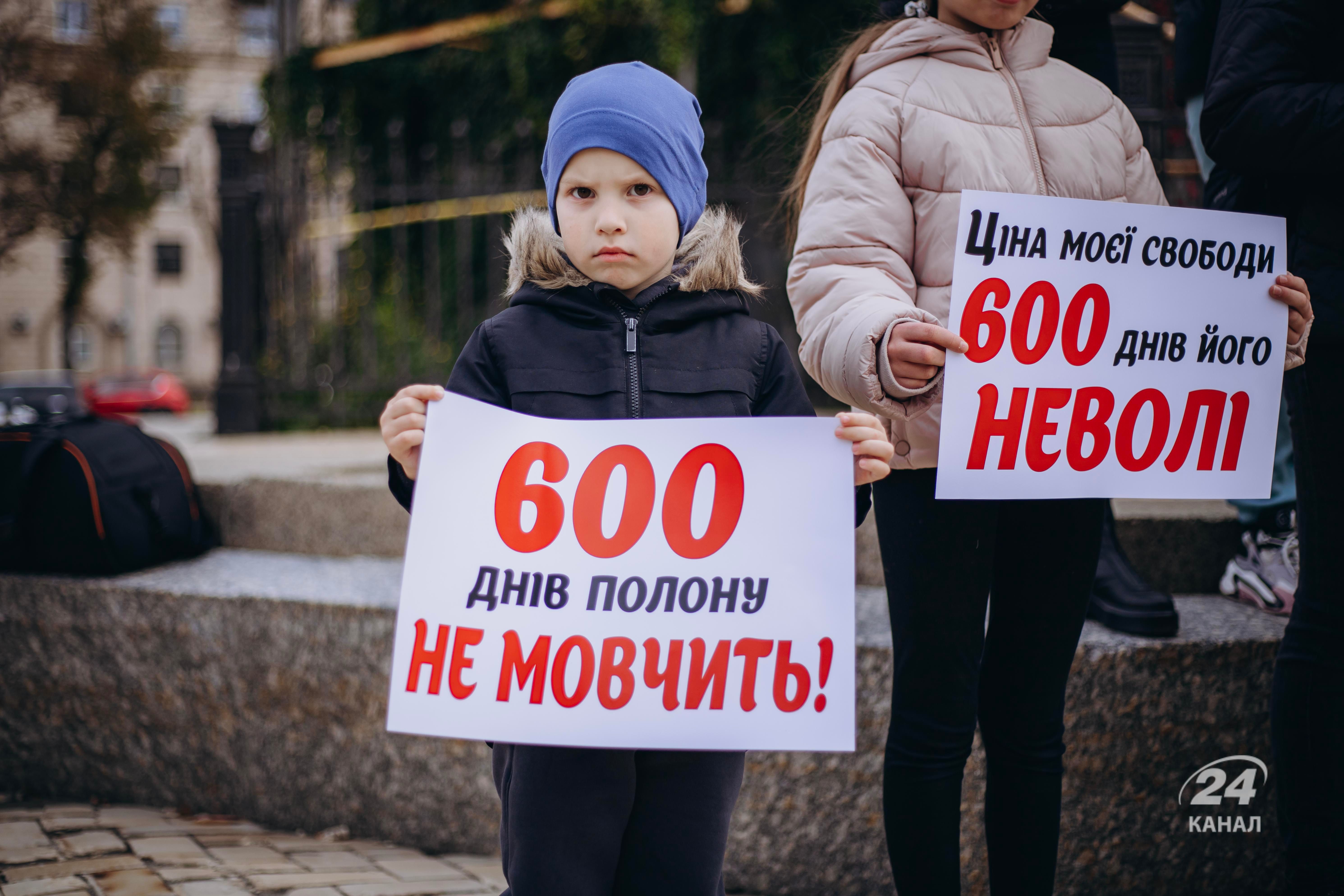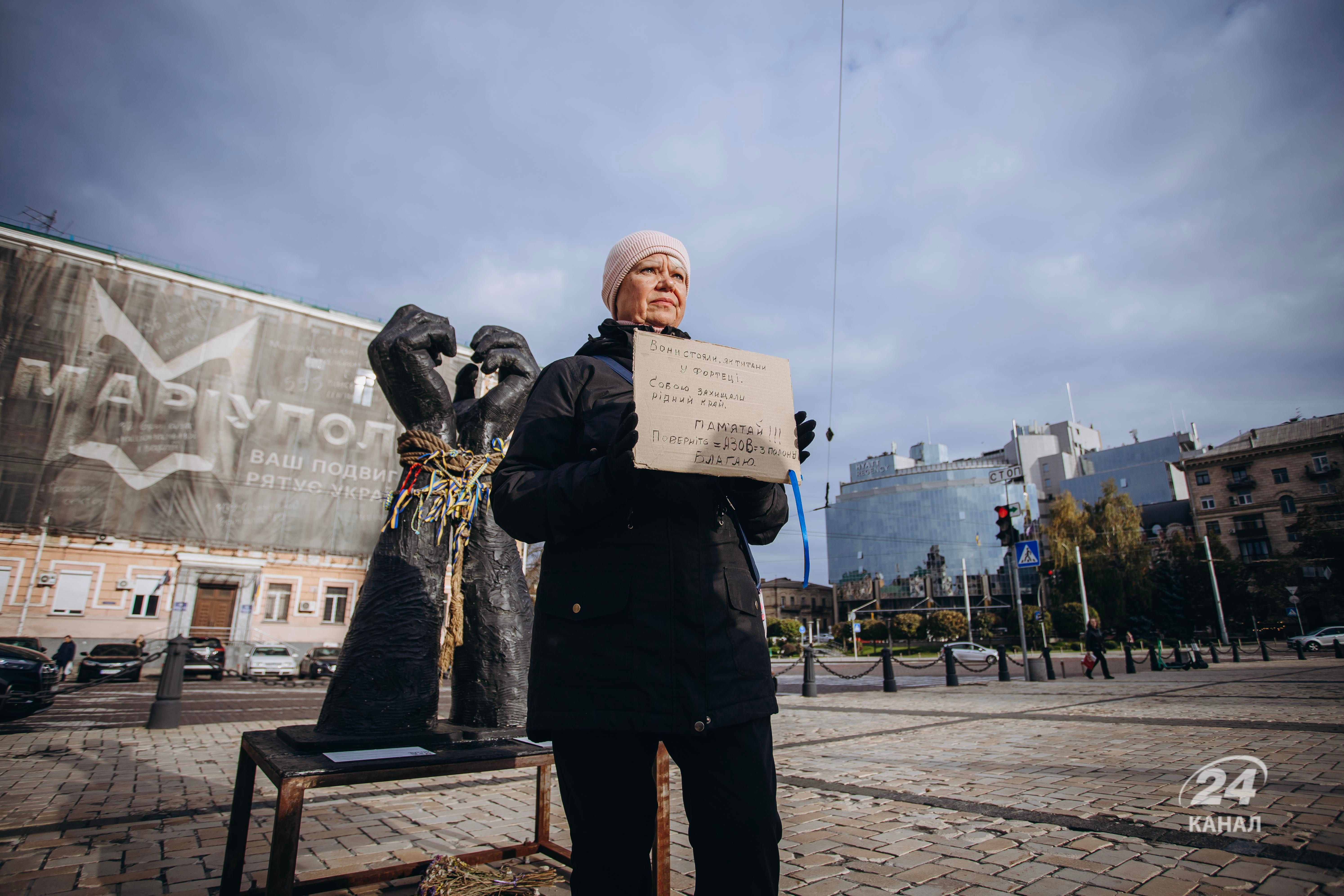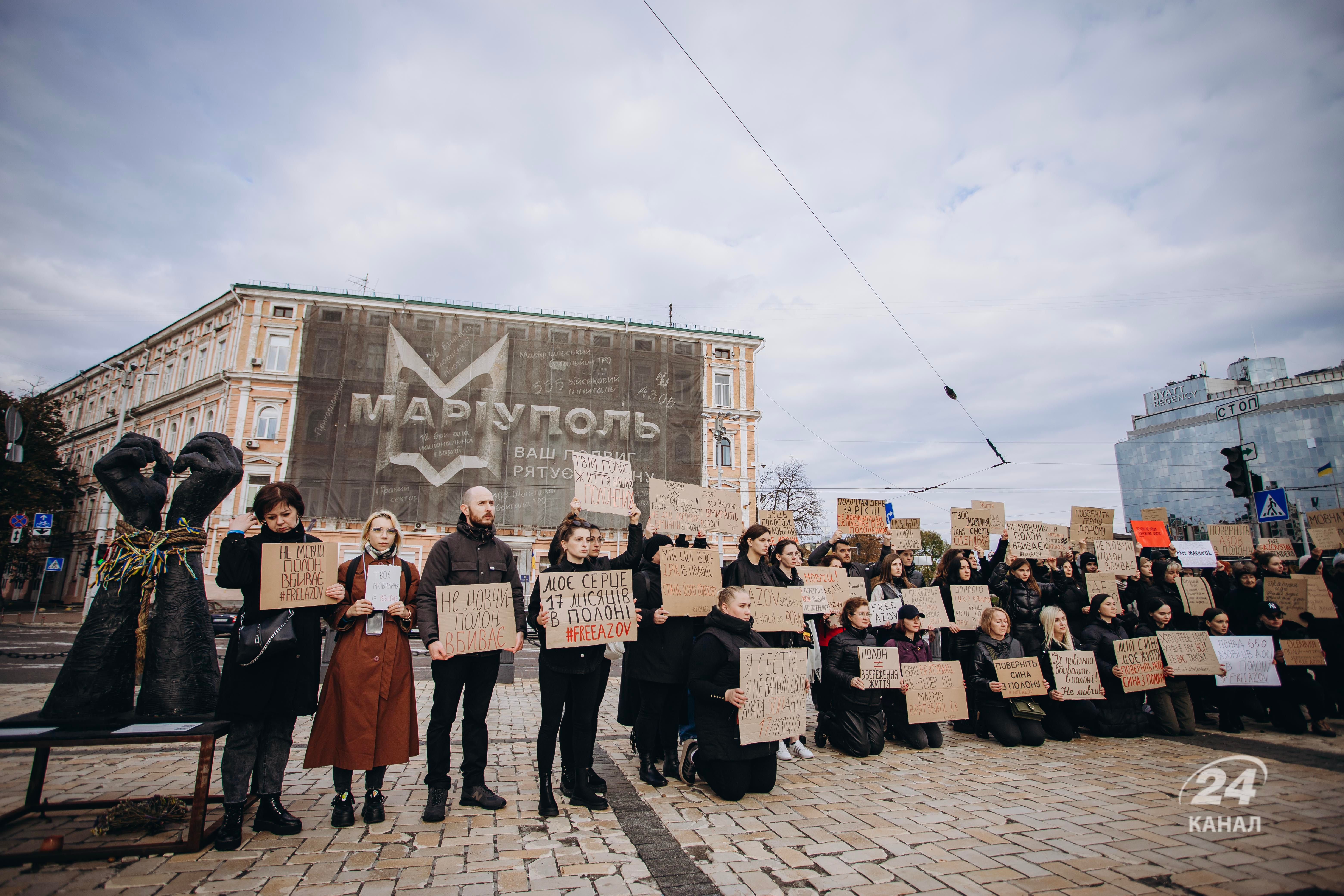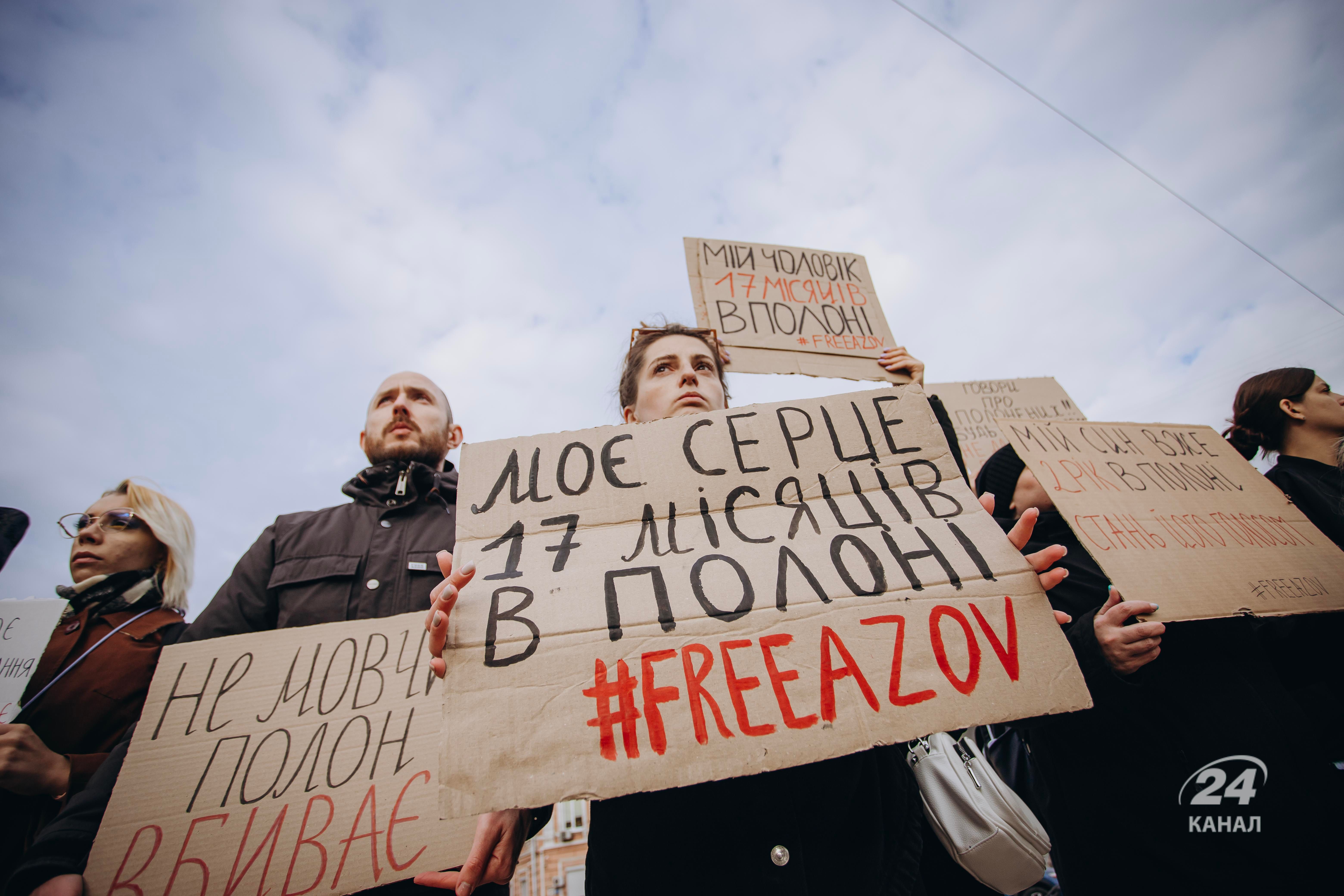 Рідні організували акцію "Будь голосом полонених. Твоє мовчання їх убиває" / Фото 24 Каналу, Валентина Поліщук