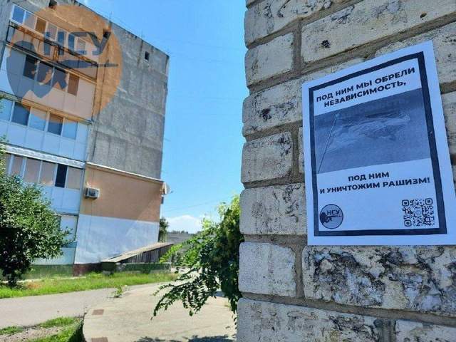 15:15 Українські партизани на окупованих територіях розвісили листівки-привітання з Днем прапора.