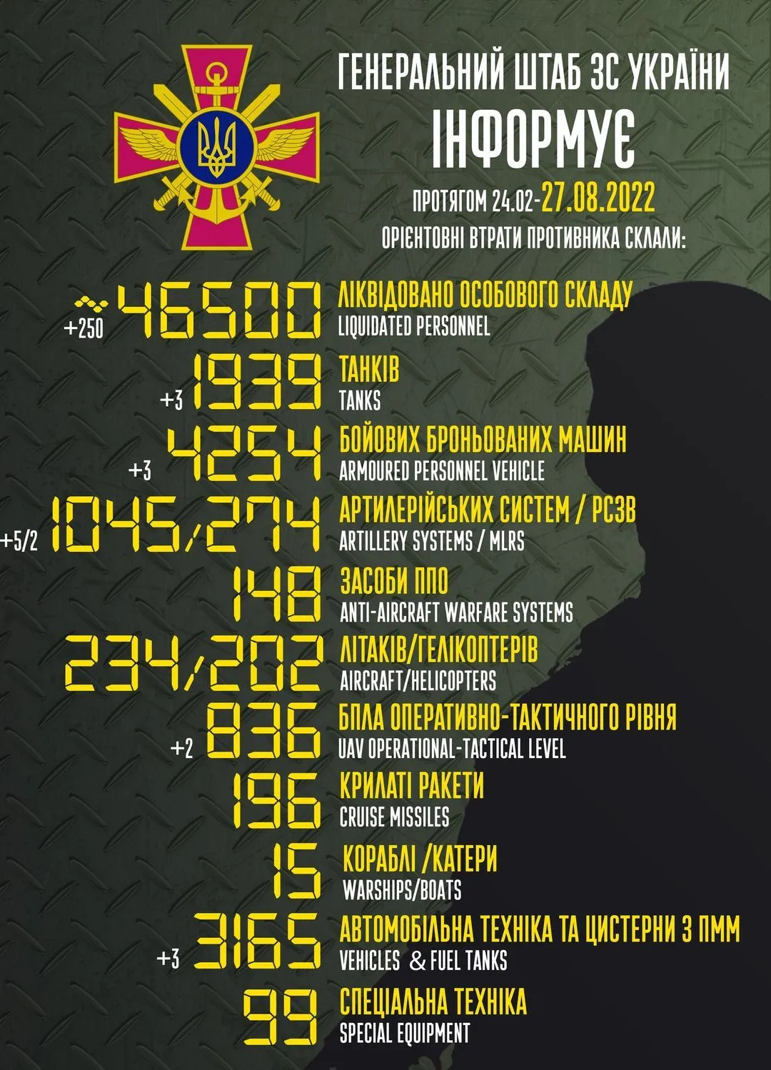 Актуальні втрати ворога станом на 27 серпня / Інфографіка Генштабу ЗСУ
