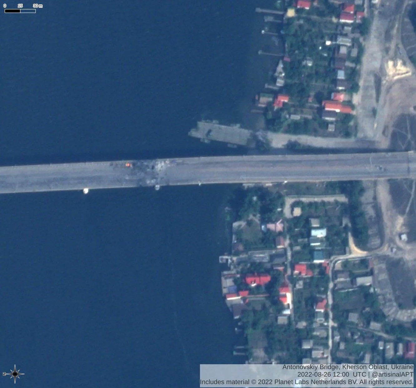 Як тепер виглядає Антонівський міст після чергових атак ЗСУ / Фото з твітера Тіма Ерхарта
