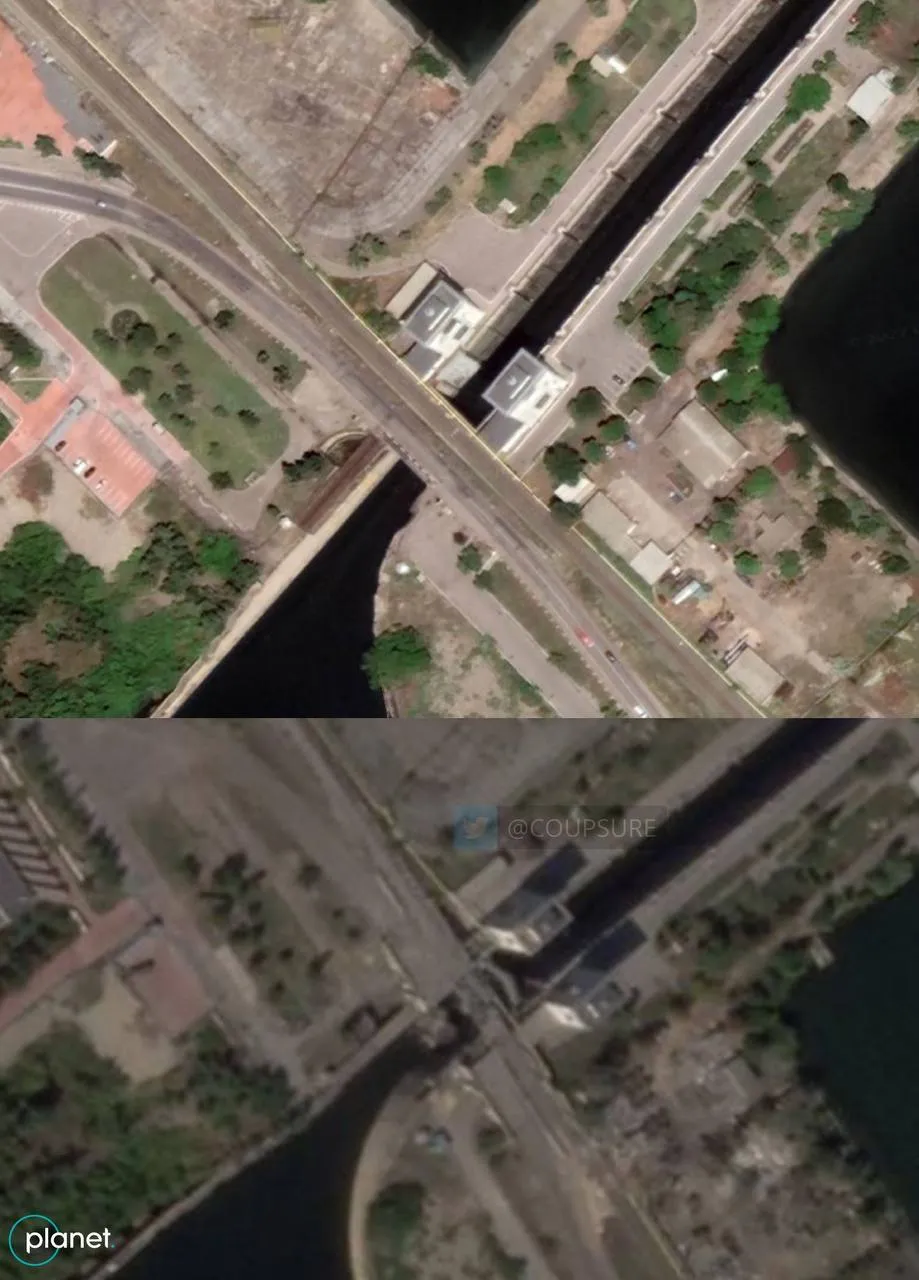 19:36 Внаслідок ударів ЗСУ міст біля дамби у Новій Каховці міг обвалитись. На супутникових знімках видно суттєві пошкодження. Однак офіційних підтверджень немає.