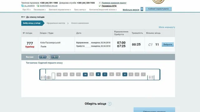 Поїзд отримав номер "777", а відправлятиметься зі столиці о 07:00. Буде лише два вагони на 14 місць у кожному. Відтак місць небагато. Про ціну нічого не сказано в коментарі "Укрзалізниці".