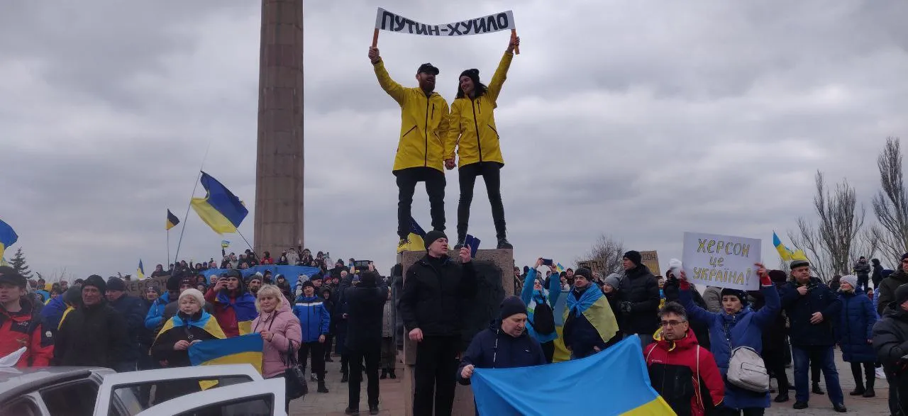 Березень-2022 – мешканці окупованого Херсона вийшли на мітинг / фото з соцмереж