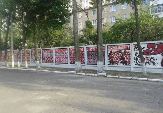 До 1 вересня вчителі та учні розмалювали 34 бетонні секції шкільного паркану традиційними орнаментами усіх регіонів України. Загальна площа малюнка становить понад 200 квадратних метрів.