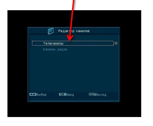 2. Натисніть "ОК" на пункті меню "Телеканали".