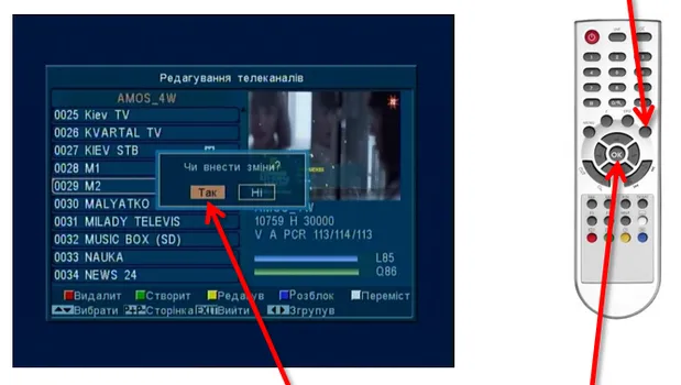 4. Кнопками пульта "Вгору/Вниз" виберіть бажану позицію каналу та натисніть "ОК".