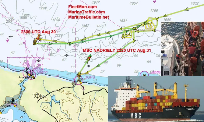 За наявною інформацією, стався інцидент уночі 30 серпня поблизу Кефкена. За борт випав старший помічник капітана контейнеровоза MSC NADRIELY. Судно тоді рухалося з Грузії до турецького Текірдагу.