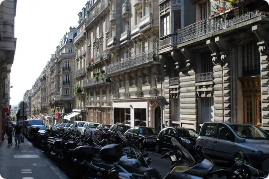 Але ми вже прямуємо туди. Тут вулички уже крутіші, все-таки пагорб. На них так само багато мотоциклів, як і будь-де у Парижі.
