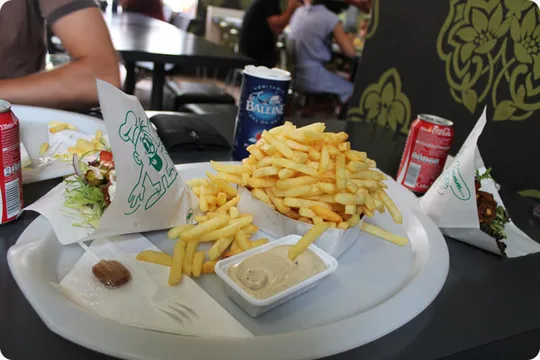 Скільки б енергії тобі не додавали нові враження, все одно потрібно харчуватись. Сьогодні, як справжі бельгійці, їмо їхню традиційну картоплю-фрі. Після Макдональдсів я трохи переоцінив свої можливості і замовив найбільшу порцію, а вона така, що нею можна і трьох людей нагодувати.