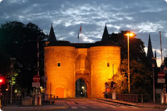 Такі от ворота — це вихід зі старого Брюґґе. У схожі ворота ми заходили, коли сюди приїхали. І перед воротами тут — розвідний міст, хоч про це ми дізнались уже наступного дня, коли він горою піднявся перед нашими носами, аби пропусти якесь довжелезне вантажне судно.
