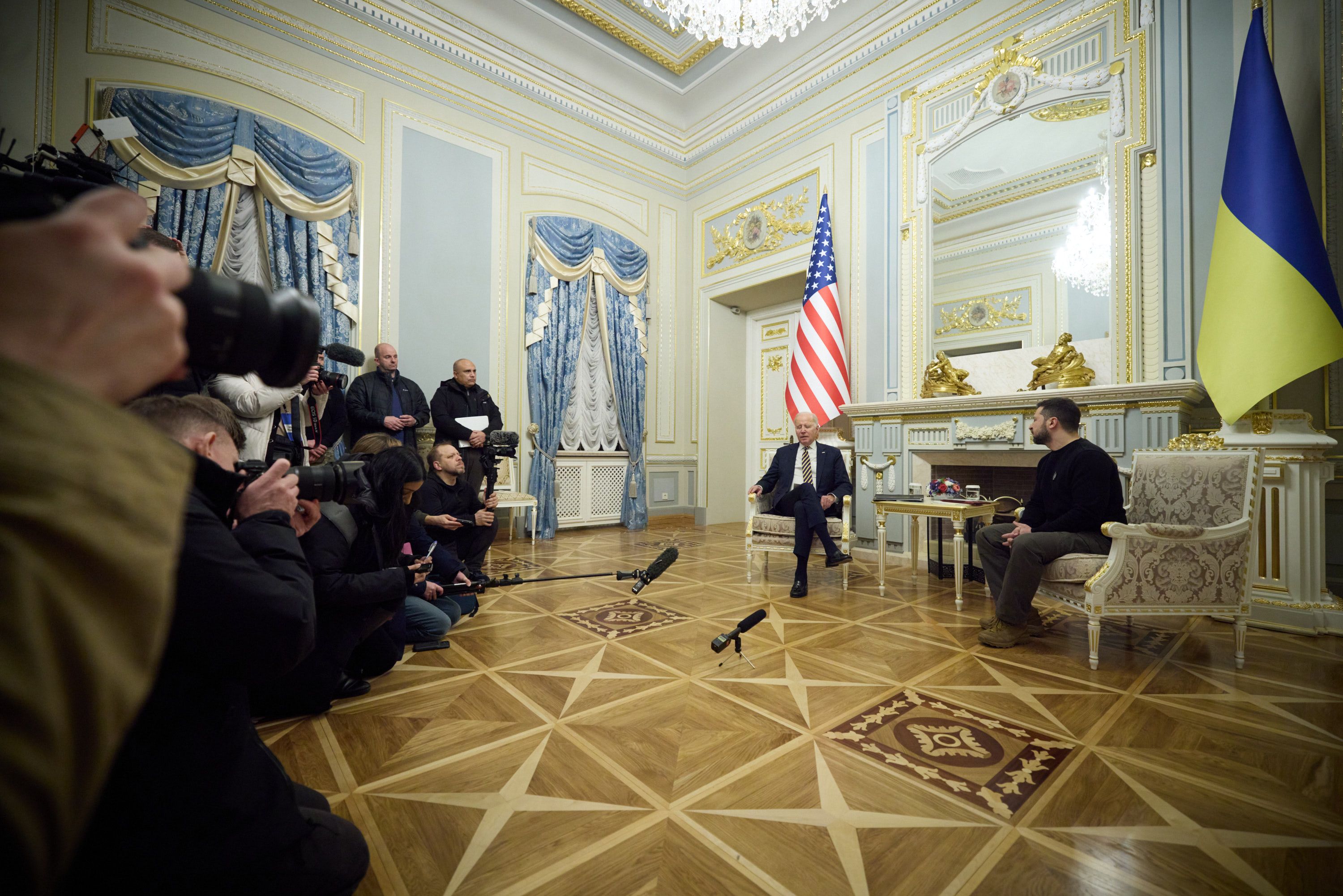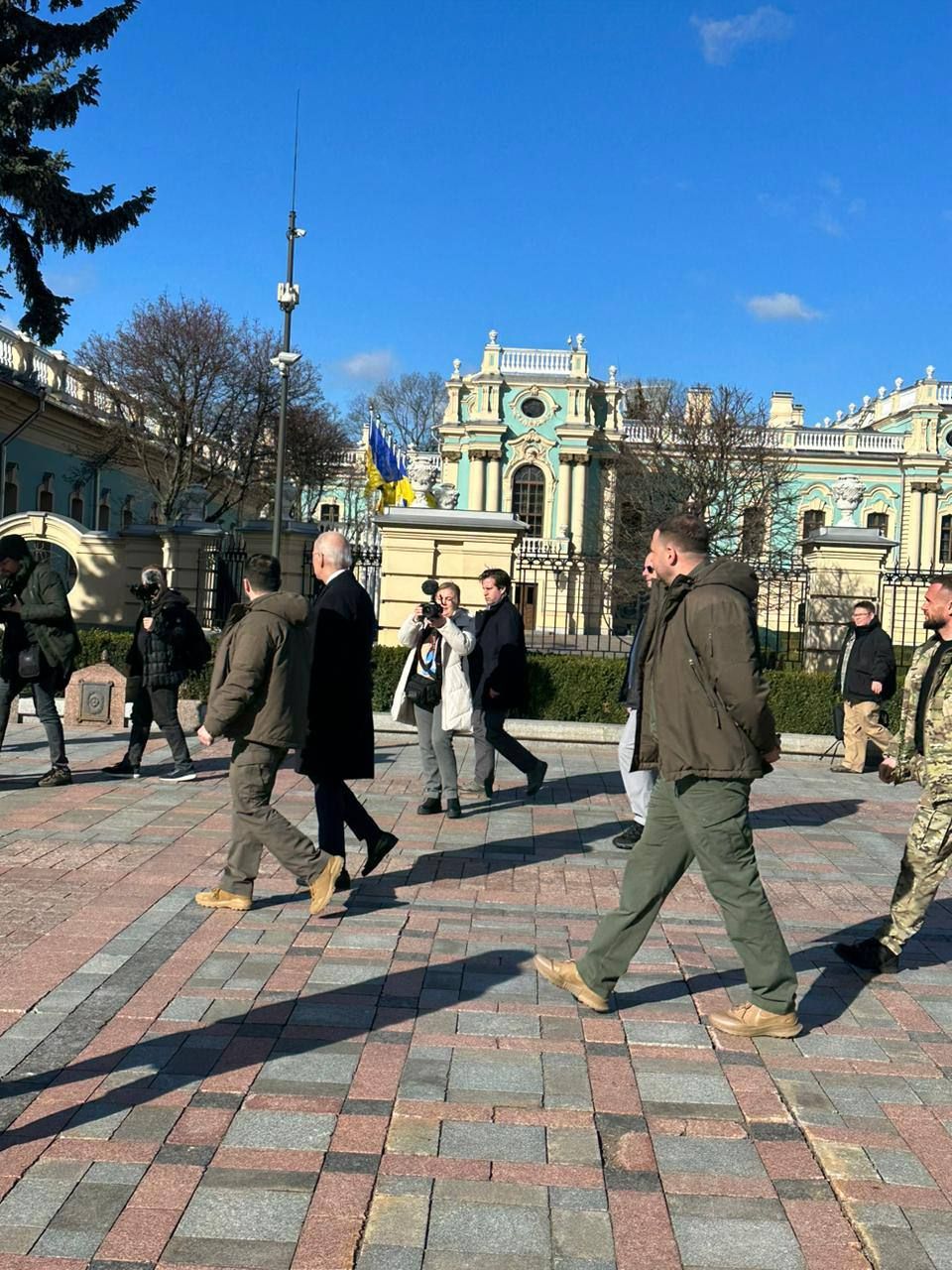 13:00 У мережі з'явилось більше фото з візиту глави Сполучених Штатів Америки в столицю нашої держави. Зауважимо, що на них він переважно з президентом Зеленським. Як зазначають у Білому домі, мета візиту президента США в Україну – розширення діалогу про підтримку нашої держави.