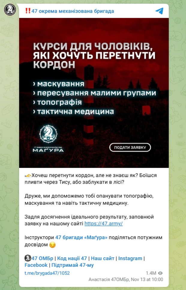 У 47 бригаді запрошують доєднатись до їхніх лав / скриншот з телеграм-каналу бригади