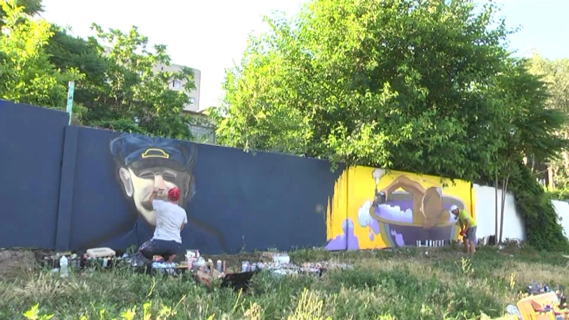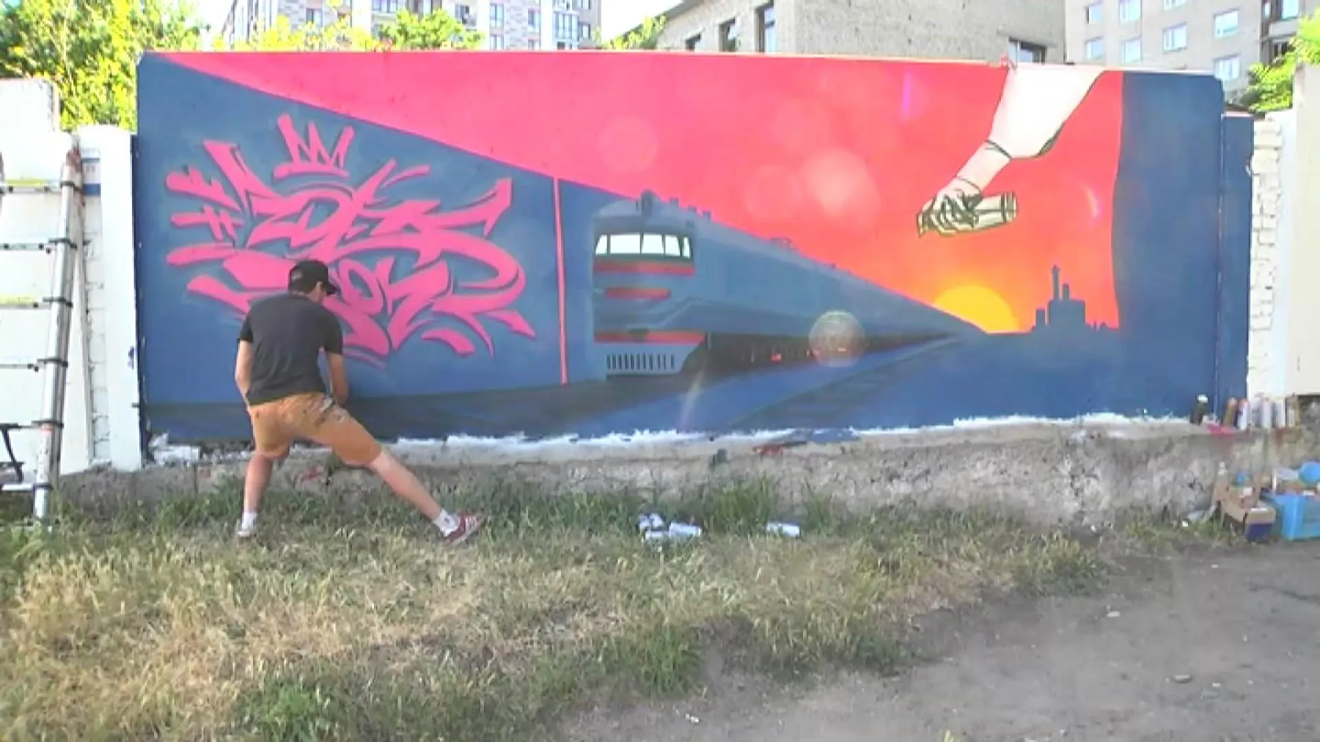 Щоби зайнятись стріт-артом, приїхали вуличні митці зі всієї України. На конкурсі вони малюють залізничників. У кожного – свій особливий стиль виконання.