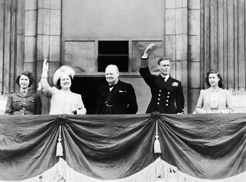 У Великій Британії більш ніж мільйон людей вийшли на вулиці з нагоди святкування завершення війни в Європі, а в Лондоні королівська сім'я, разом із тоді ще принцесою Єлизаветою та прем'єр-міністром Вінстоном Черчиллем, вітали народ із балкона палацу.