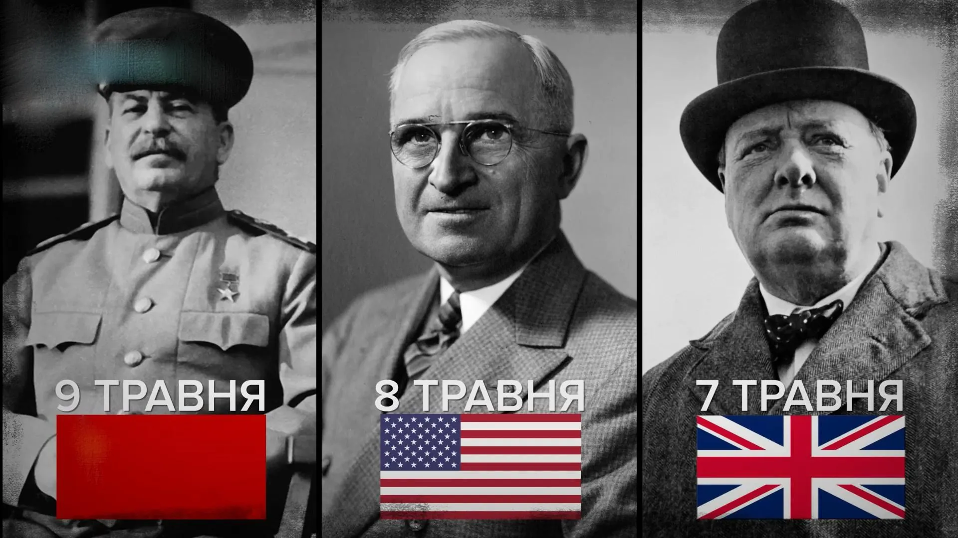 Тоді ж, 7 травня, Вінстон Черчилль хотів якнайшвидше оголосити про закінчення війни, утім американський президент Гаррі Трумен вважав, що 3 лідери мають зробити це одночасно наступного дня. Сталін взагалі бажав відтермінувати будь-які оголошення до 9 травня.
