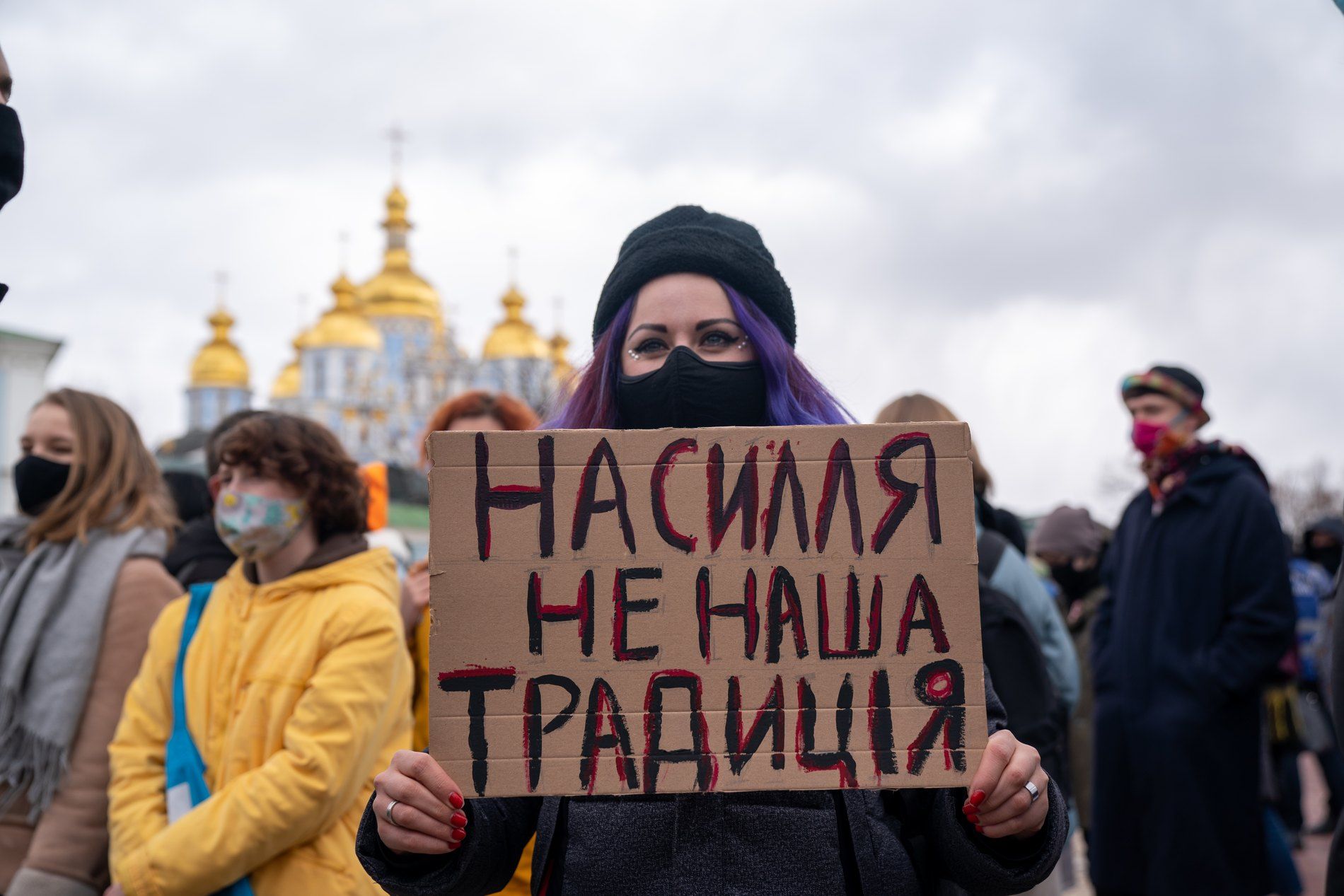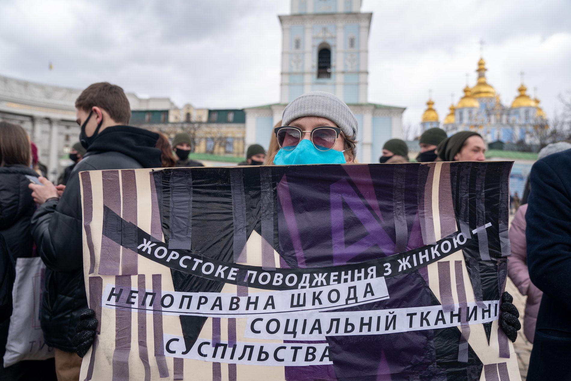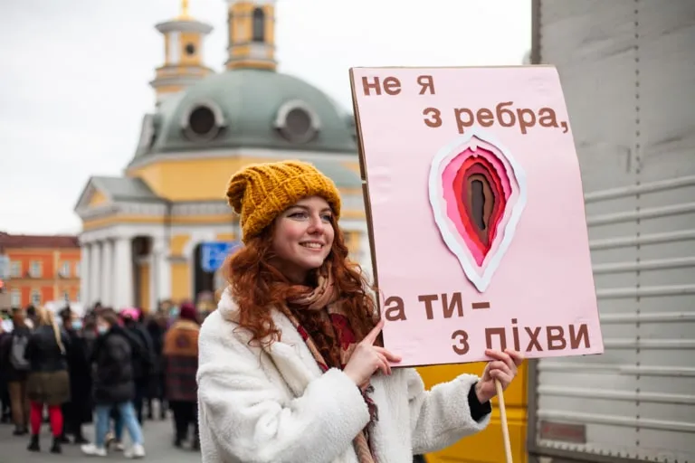 Дівчина на марші жінок у Києві у 2021 році / Фото The Village