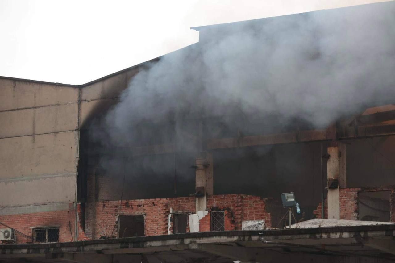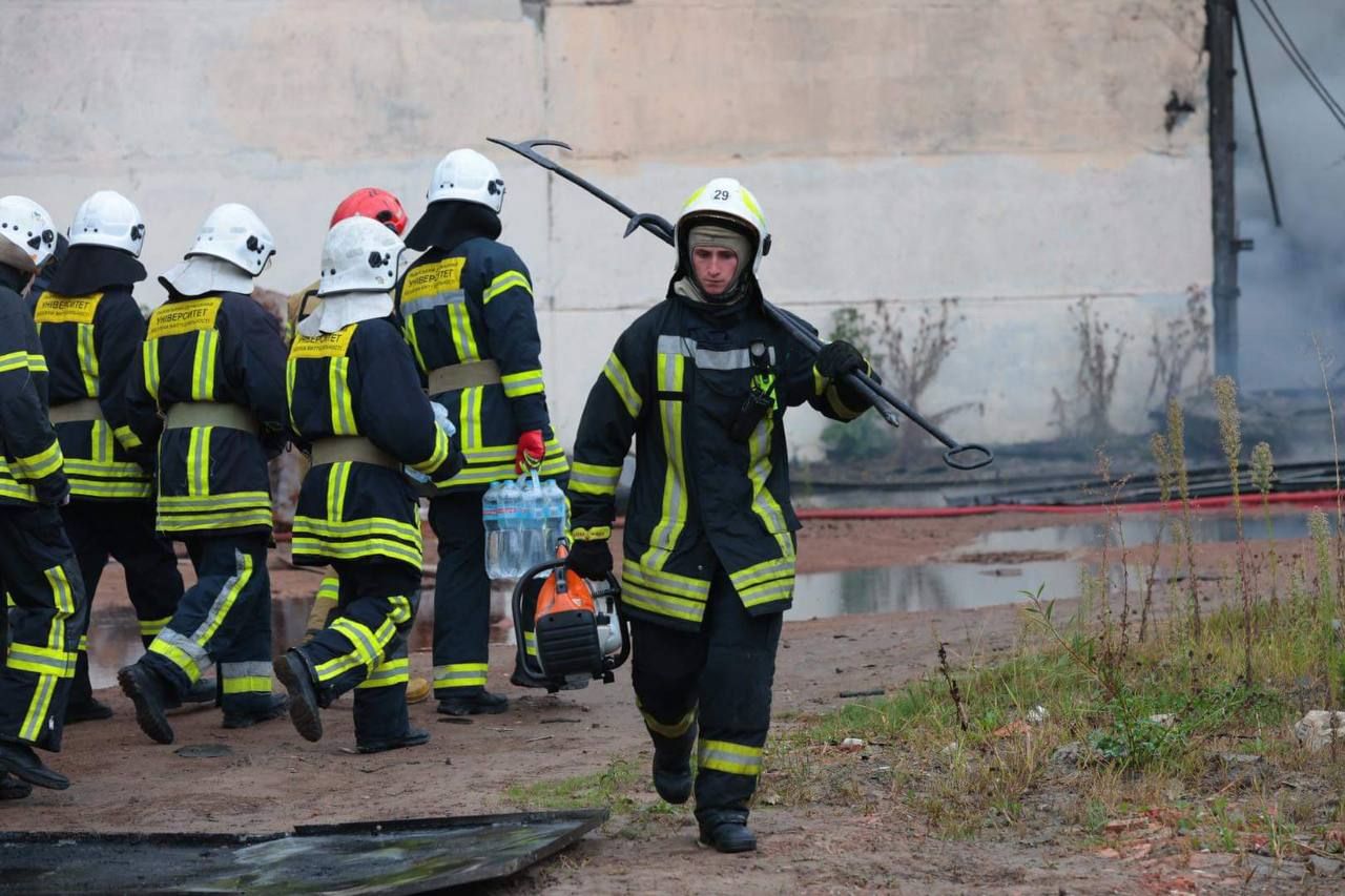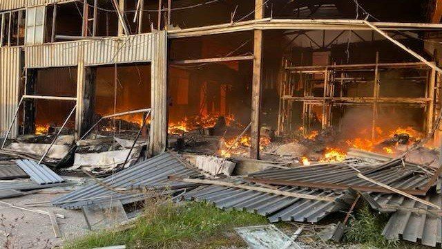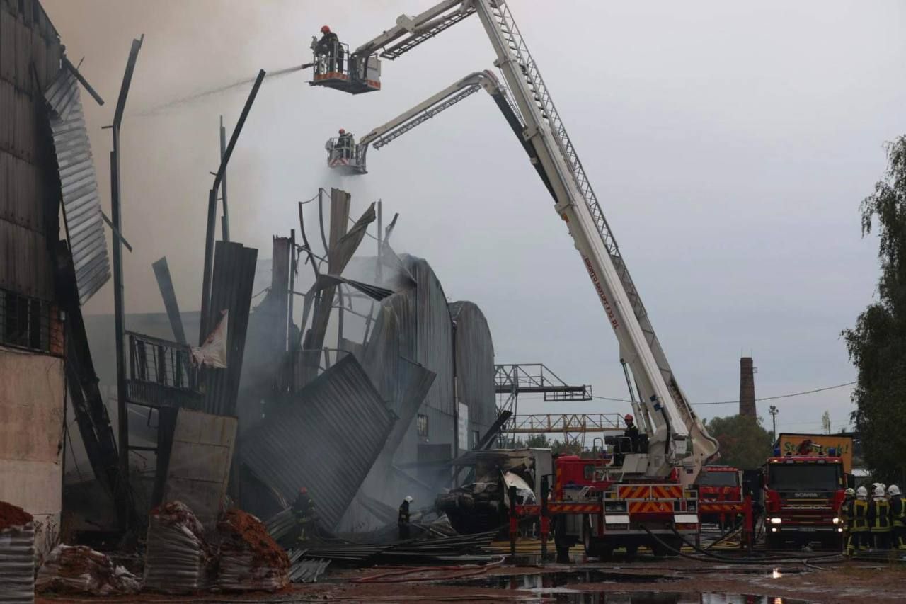 У ДСНС повідомили, що внаслідок влучань на складах виникла пожежа на площі 9 тисяч 450 кв.м. О 9:46 пожежу складських будівель локалізували на загальній площі 9 тисяч 400 кв.м. Станом на зараз рятувальники продовжують гасити полум'я.