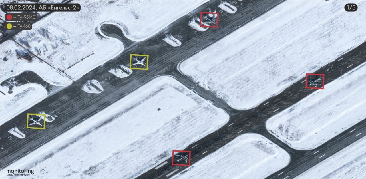 В мережі цьогоріч наприкінці січня з'являлися супутникові знімки аеродрому "Енгельс-2", що у Саратовській області в Росії. На ньому тоді вдалося зафіксувати 9 одиниць ворожої авіації. Станом на 23 січня 2024 року на аеродромі перебували такі ж літаки, що й станом на 8 лютого, лише в іншій кількості.