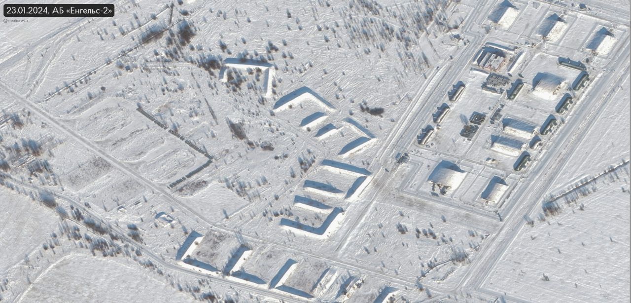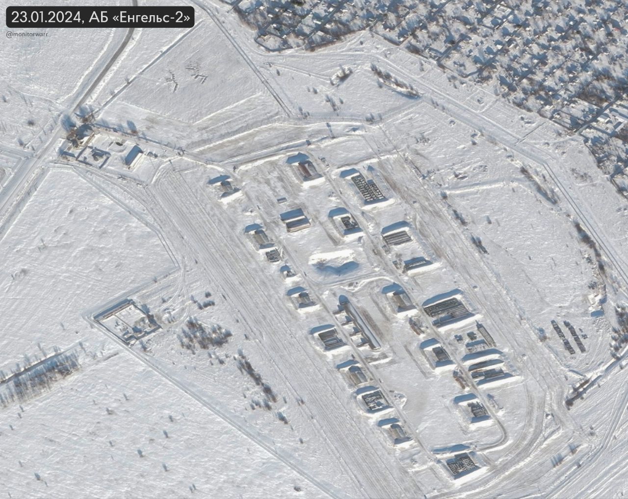 У мережі з'явилися супутникові знімки аеродрому “Енгельс-2, на яких мона побачити розміщення російської військової авіації. Зазначається, що станом на 23 січня 2024 року на аеродромі перебувало: