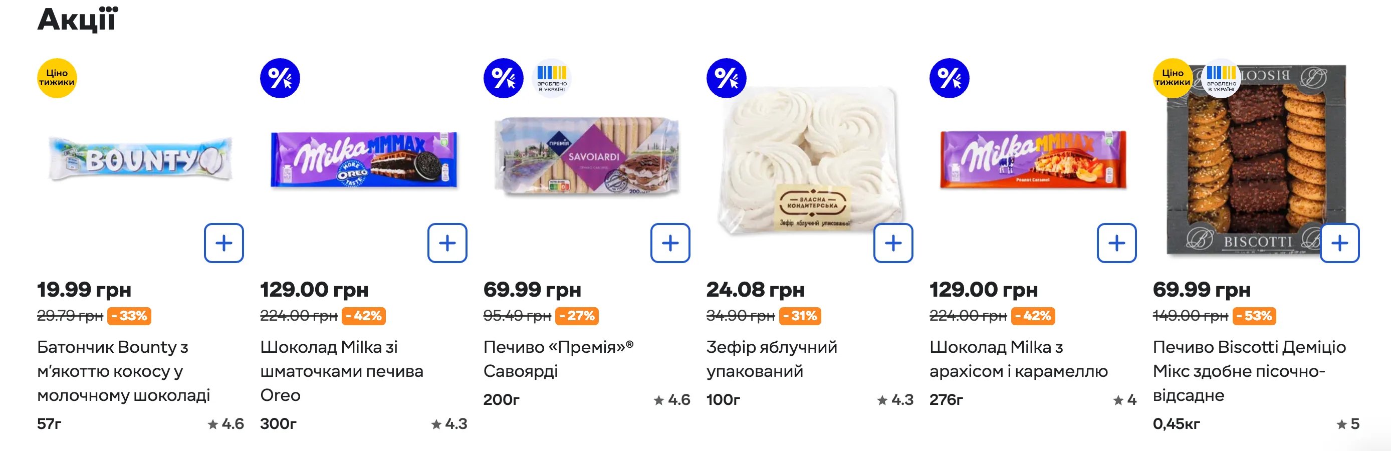 - шоколад Milka с кусочками печенья Oreo – 129 гривен вместо 224 гривен (-42% скидки);
