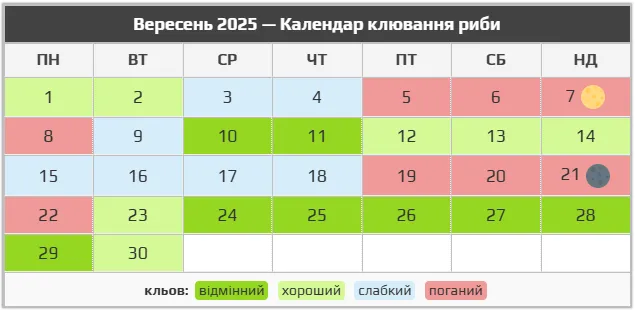 Когда лучшие дни для рыбалки в сентябре / Календарь Vlisi