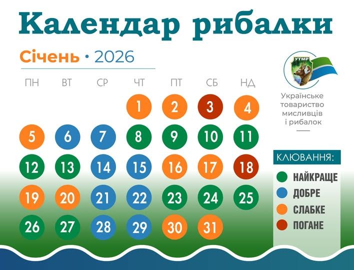 Как выглядит календарь рыбака на январь / Изображение Украинское общество охотников и рыболовов