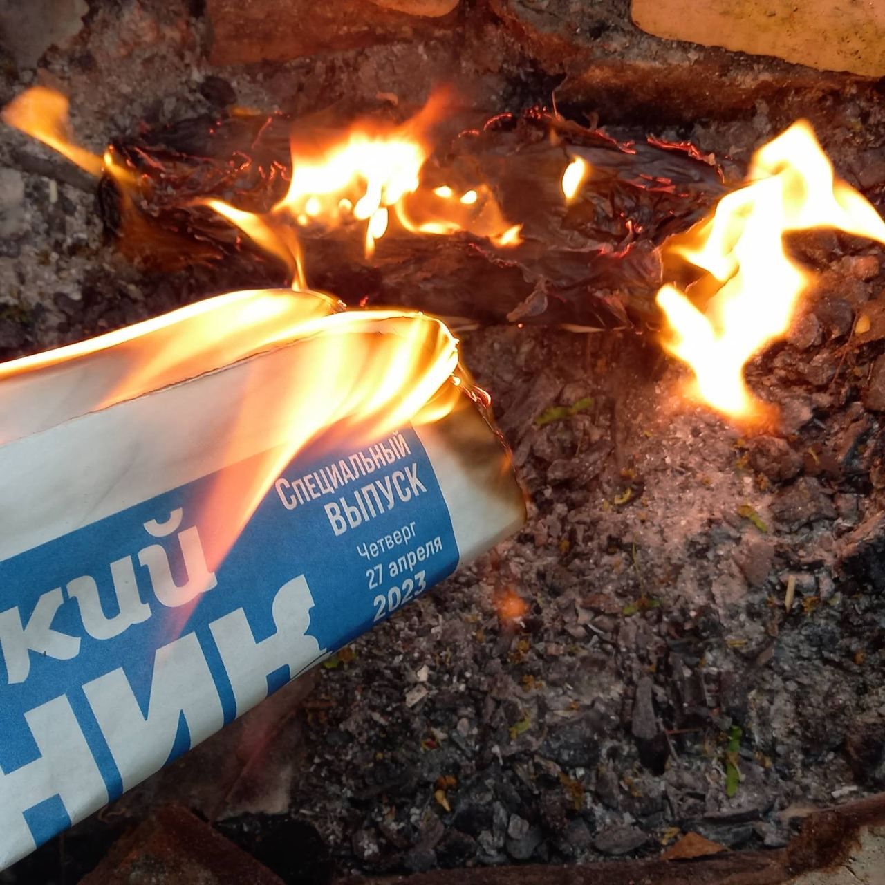 Активісти руху "Жовта стрічка" спалили понад 100 примірників "аквафрешних" газет, чим черговий раз продемонстрували, що не підкоряться окупантам.