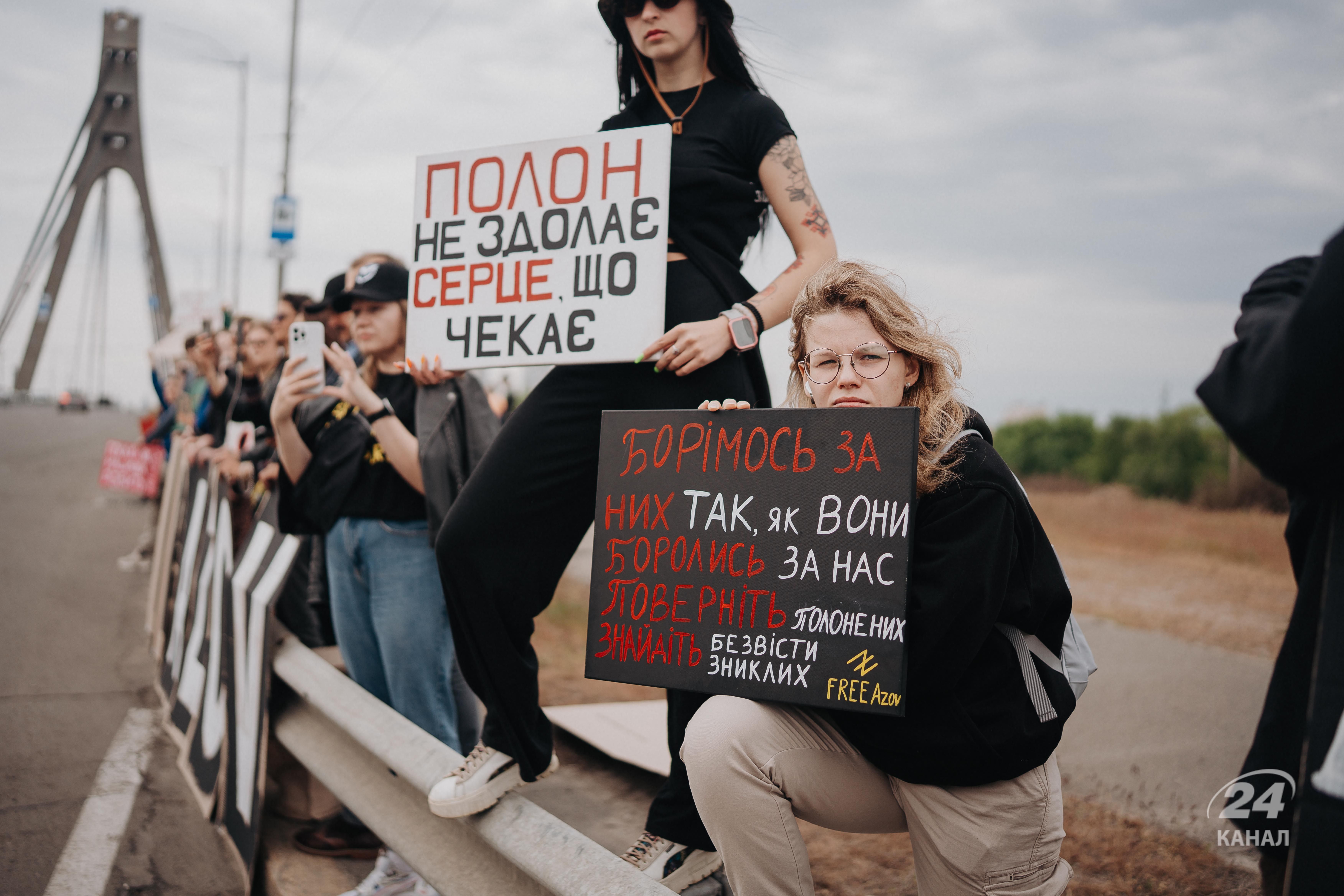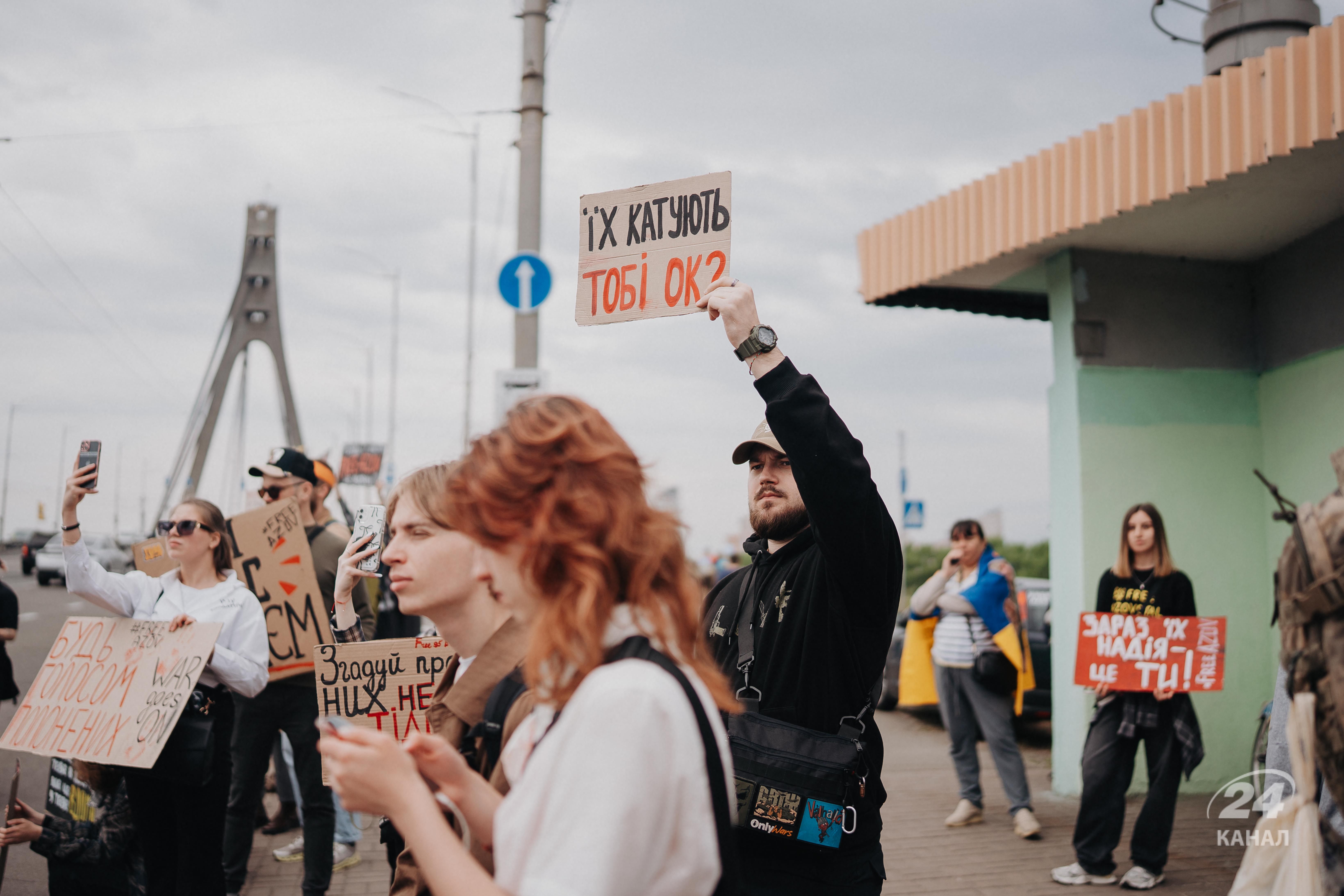 Як повідомила кореспондентка 24 Каналу, яка відвідала акцію, традиційно підтримати полонених бійців вийшло чимало людей. Такі демонстрації – нагадування українцям та світовій спільноті, що сотні бійців "Азову" й досі перебувають у російському полоні.