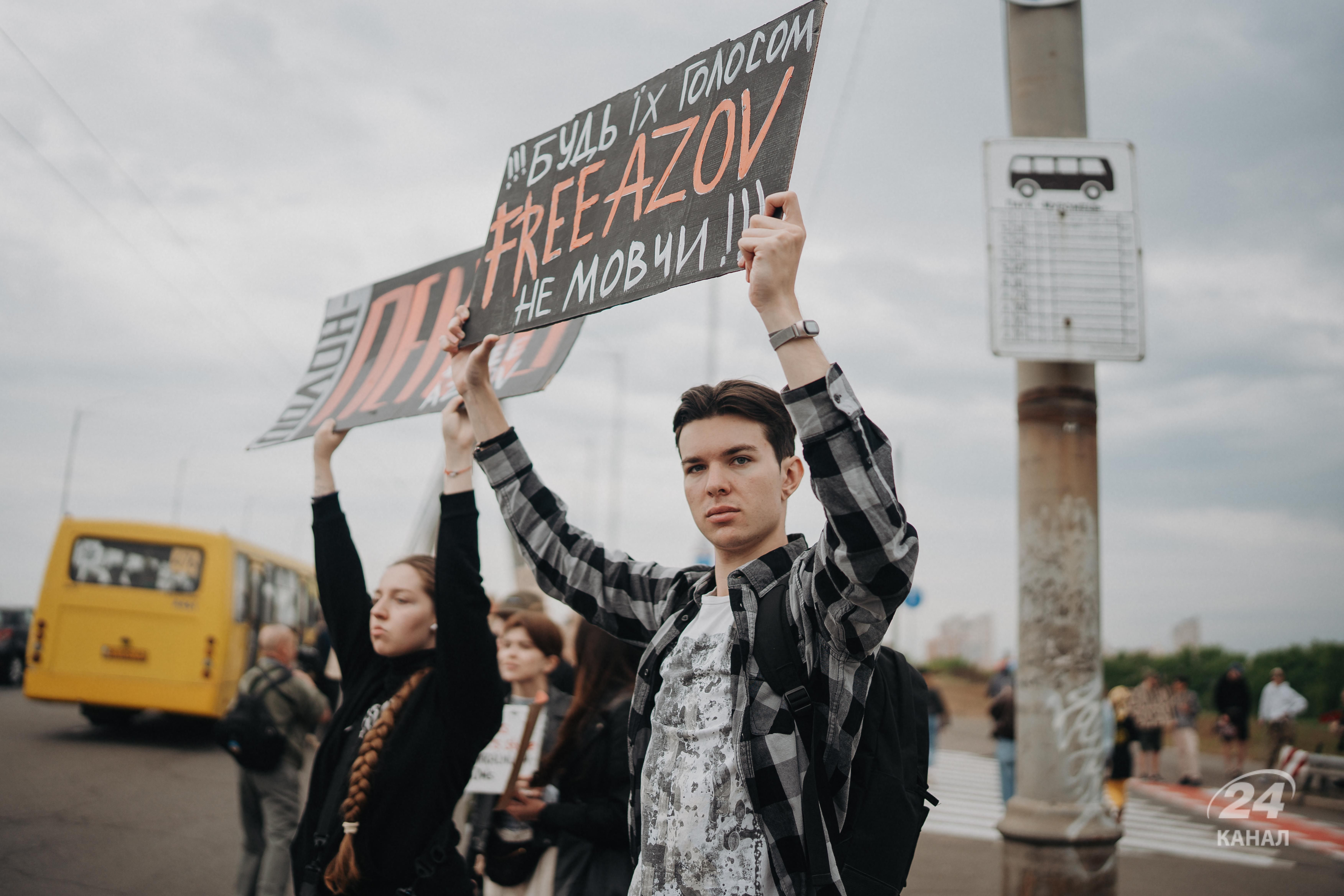 До акції на підтримку "Азову" традиційно долучилися й водії. Вони демонстрували плакати з вікна автівок, а інші – сигналили на підтримку акції.