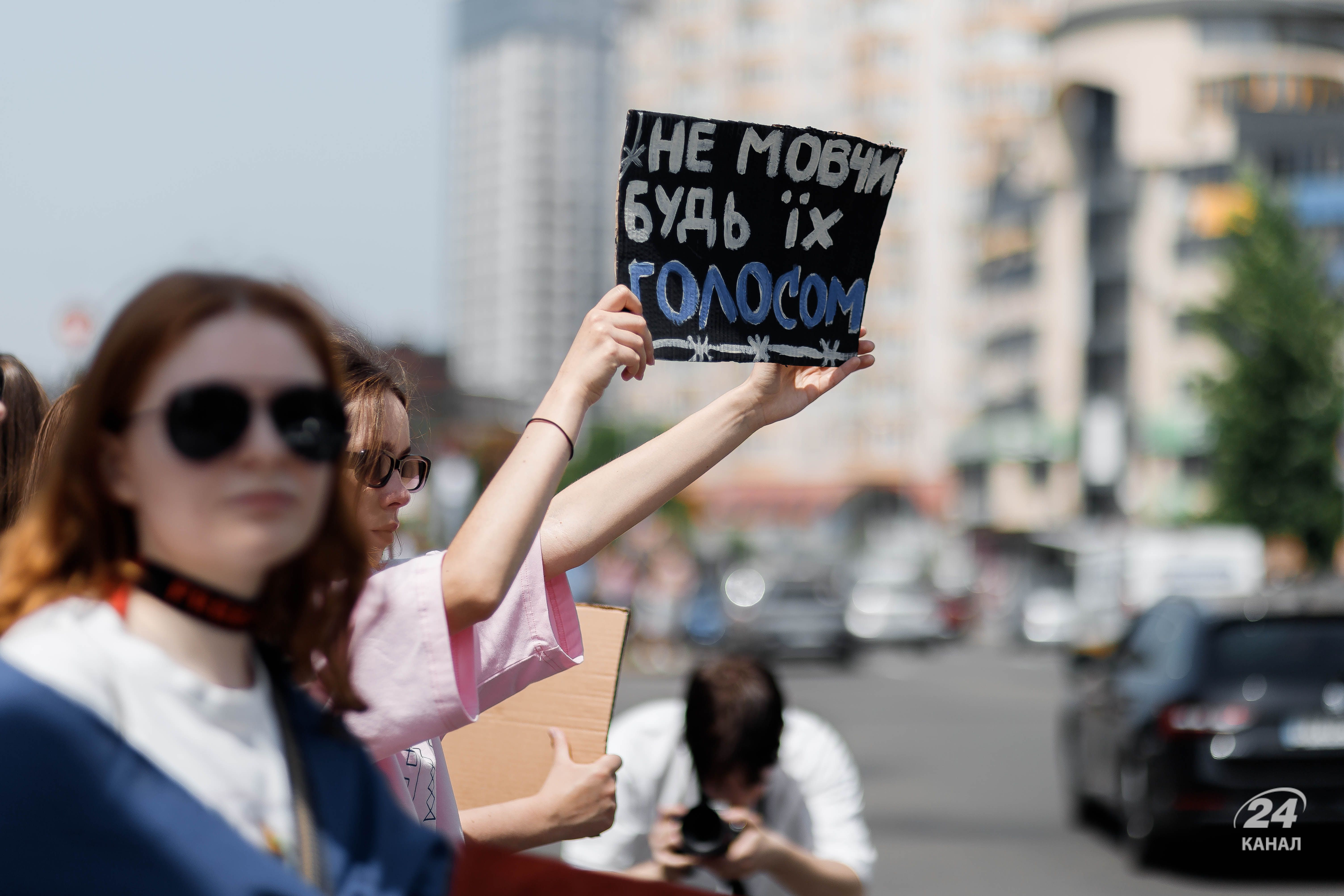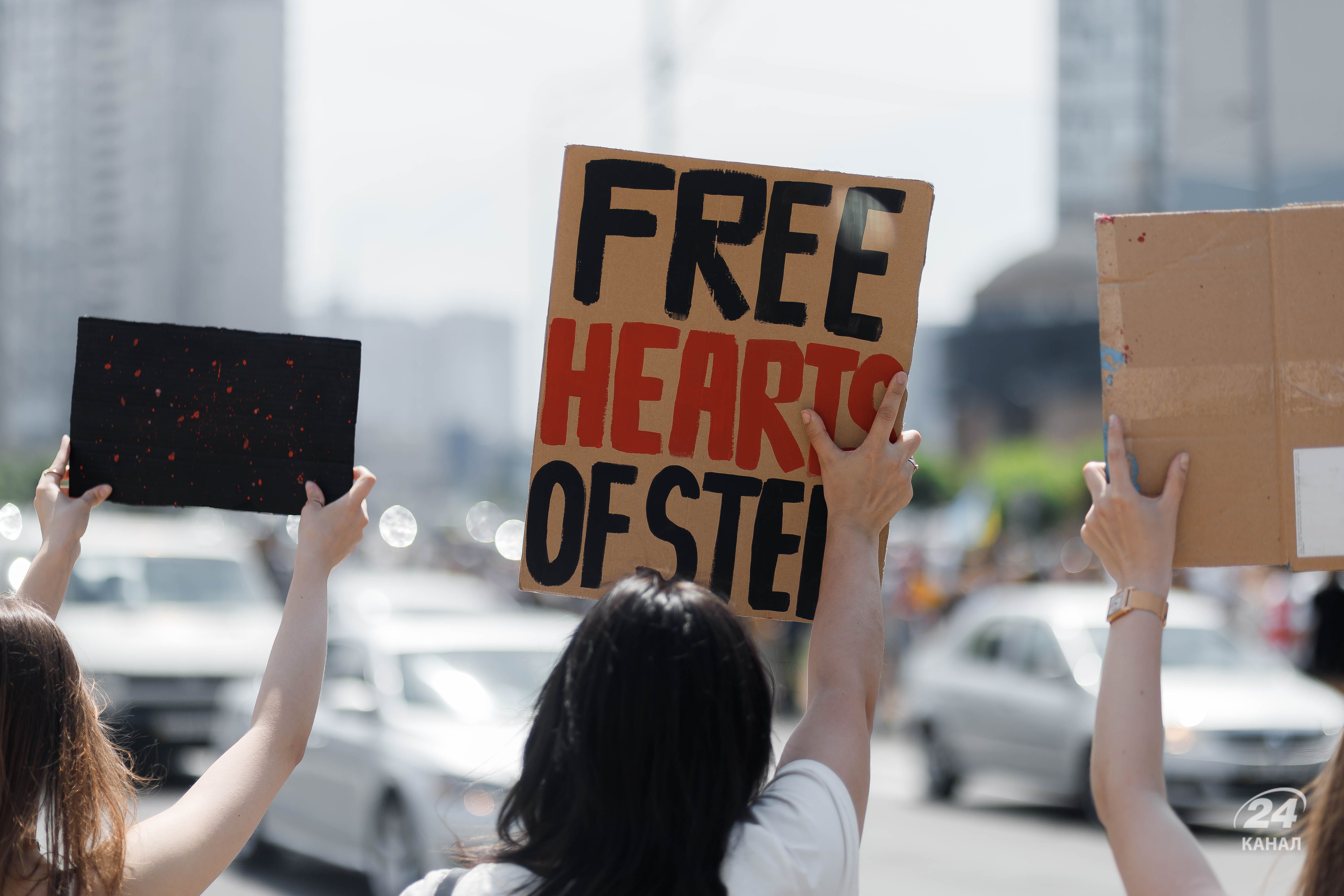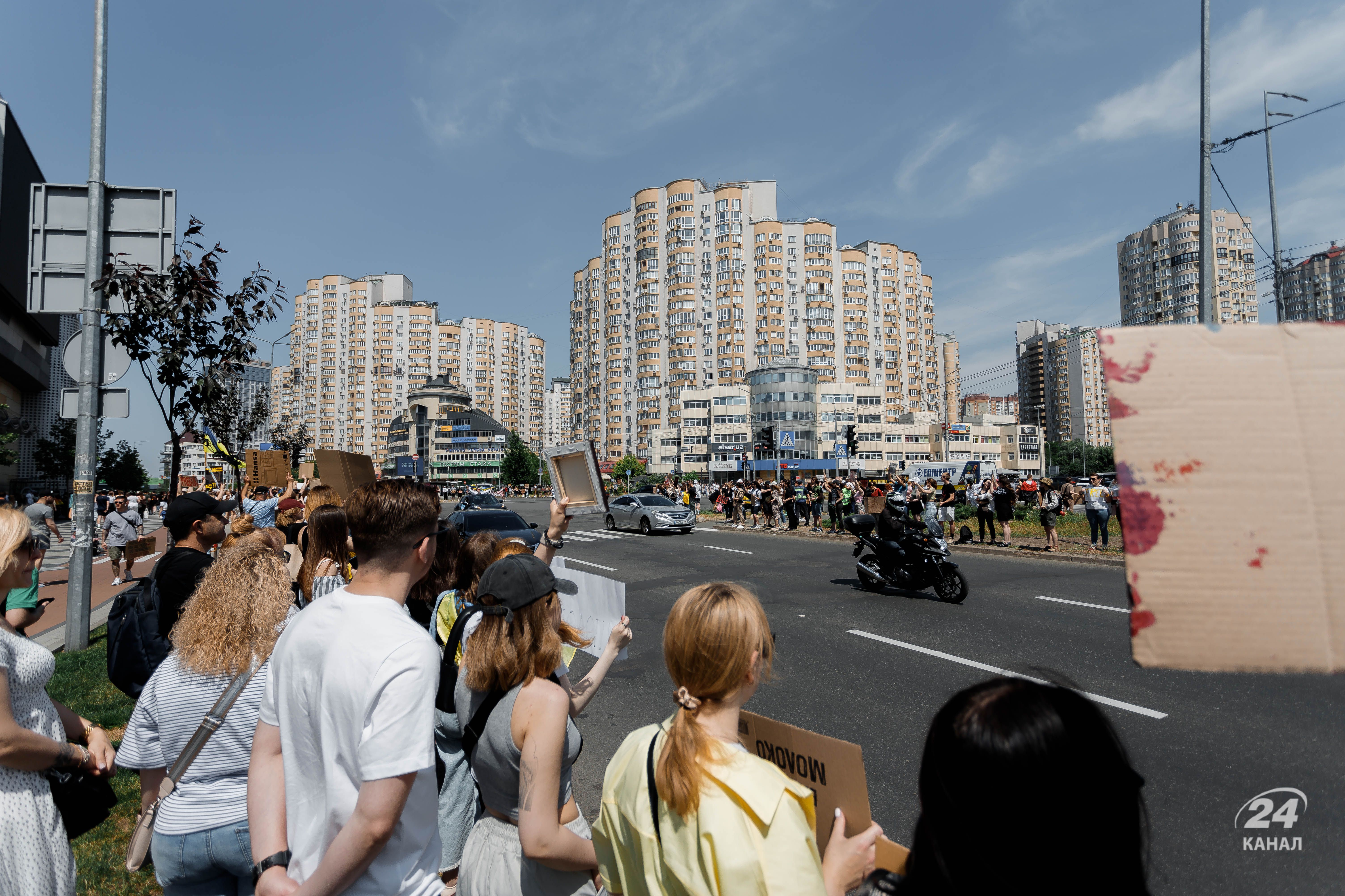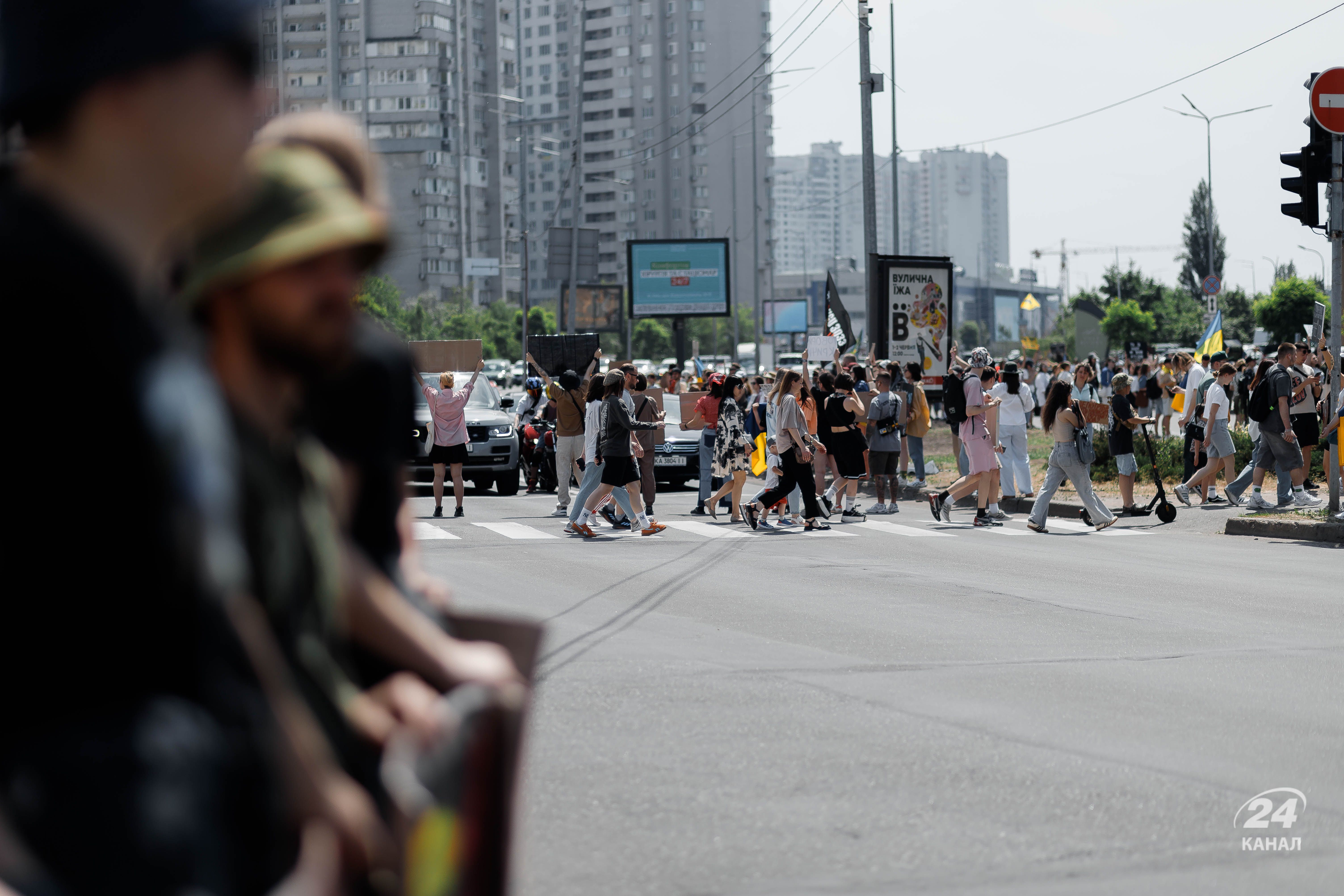 Як повідомляє кореспондентка 24 Каналу, традиційна мирна акція почалася на Дніпровській набережній. На демонстрацію з різними плакатами в руках вийшло чимало українців.