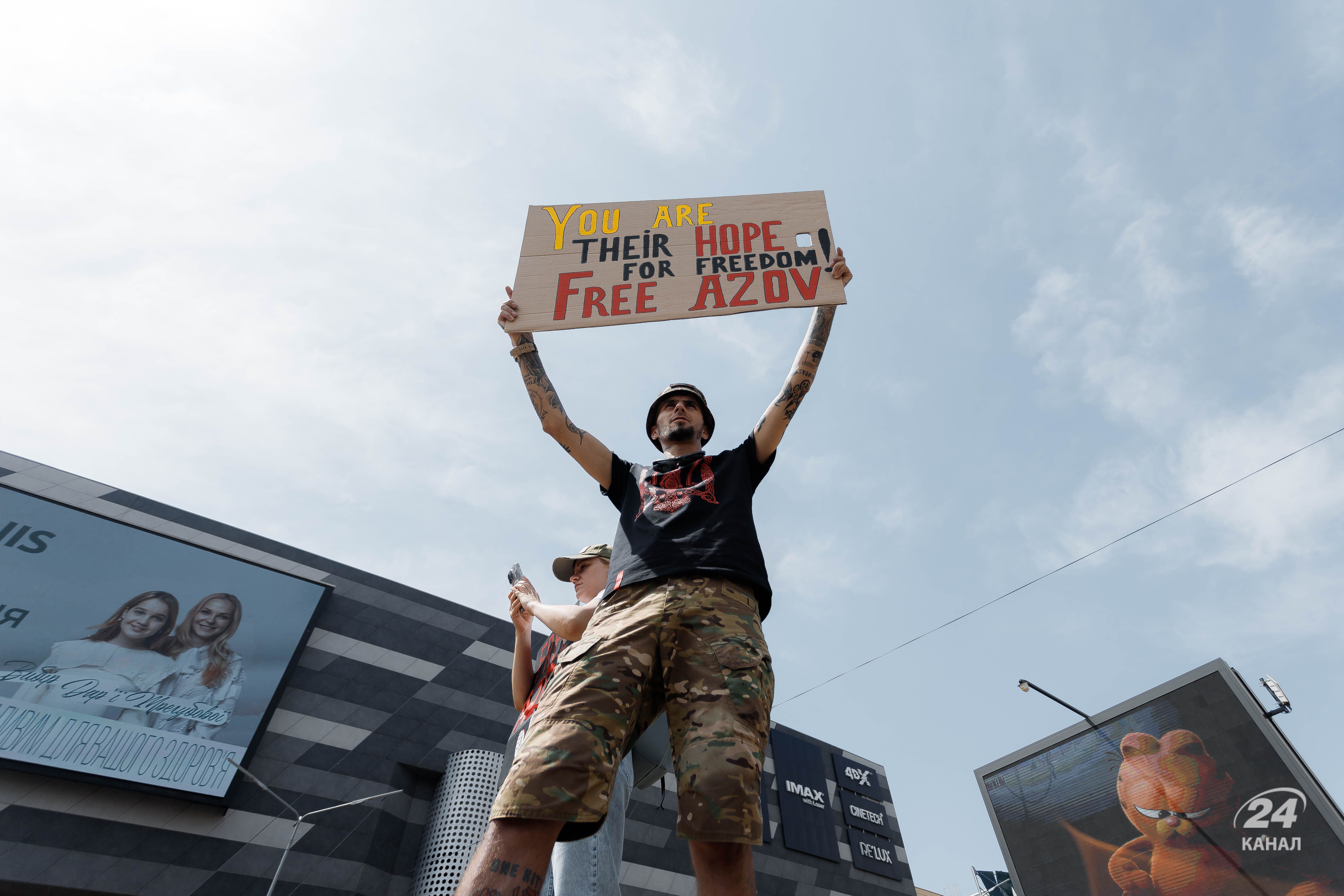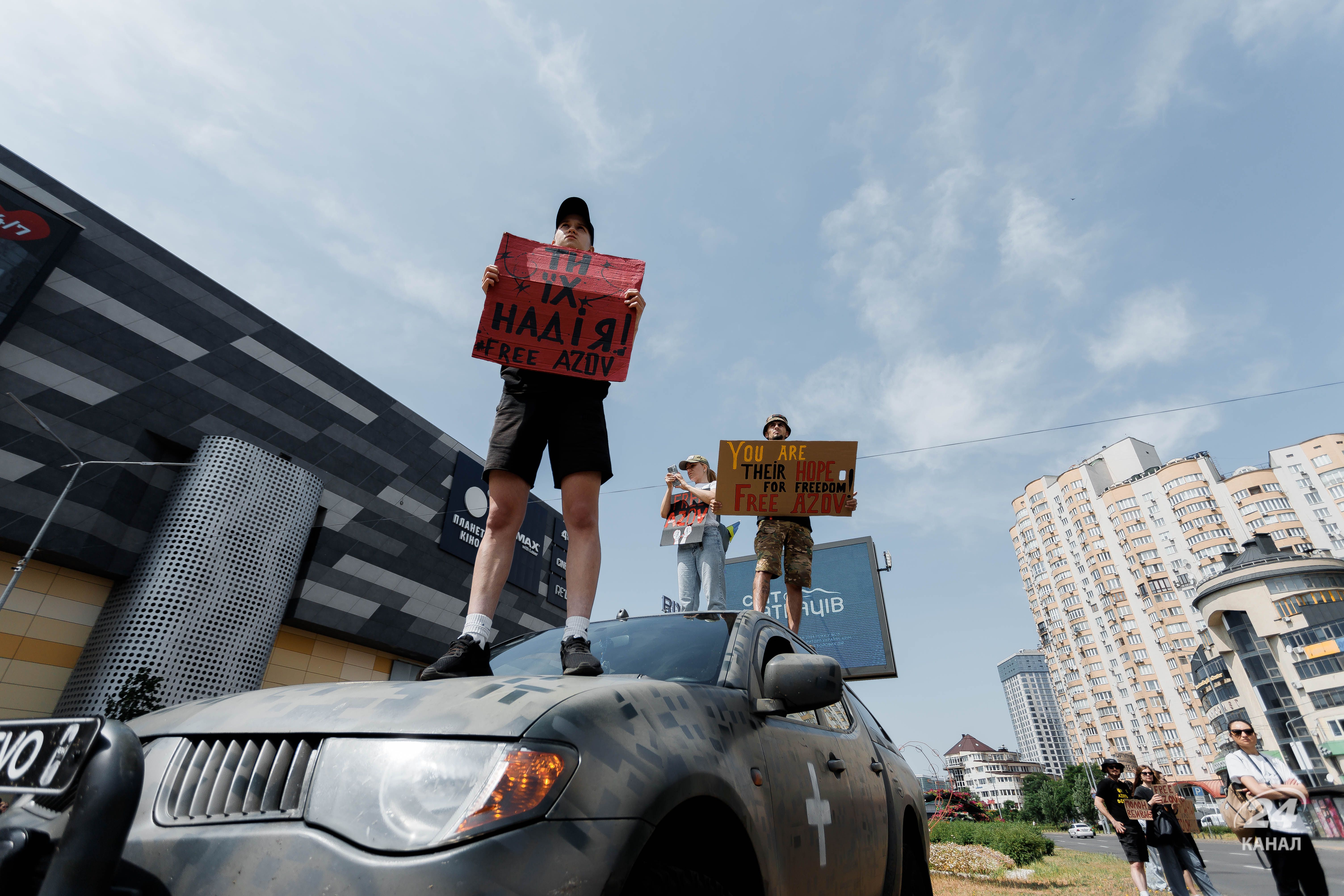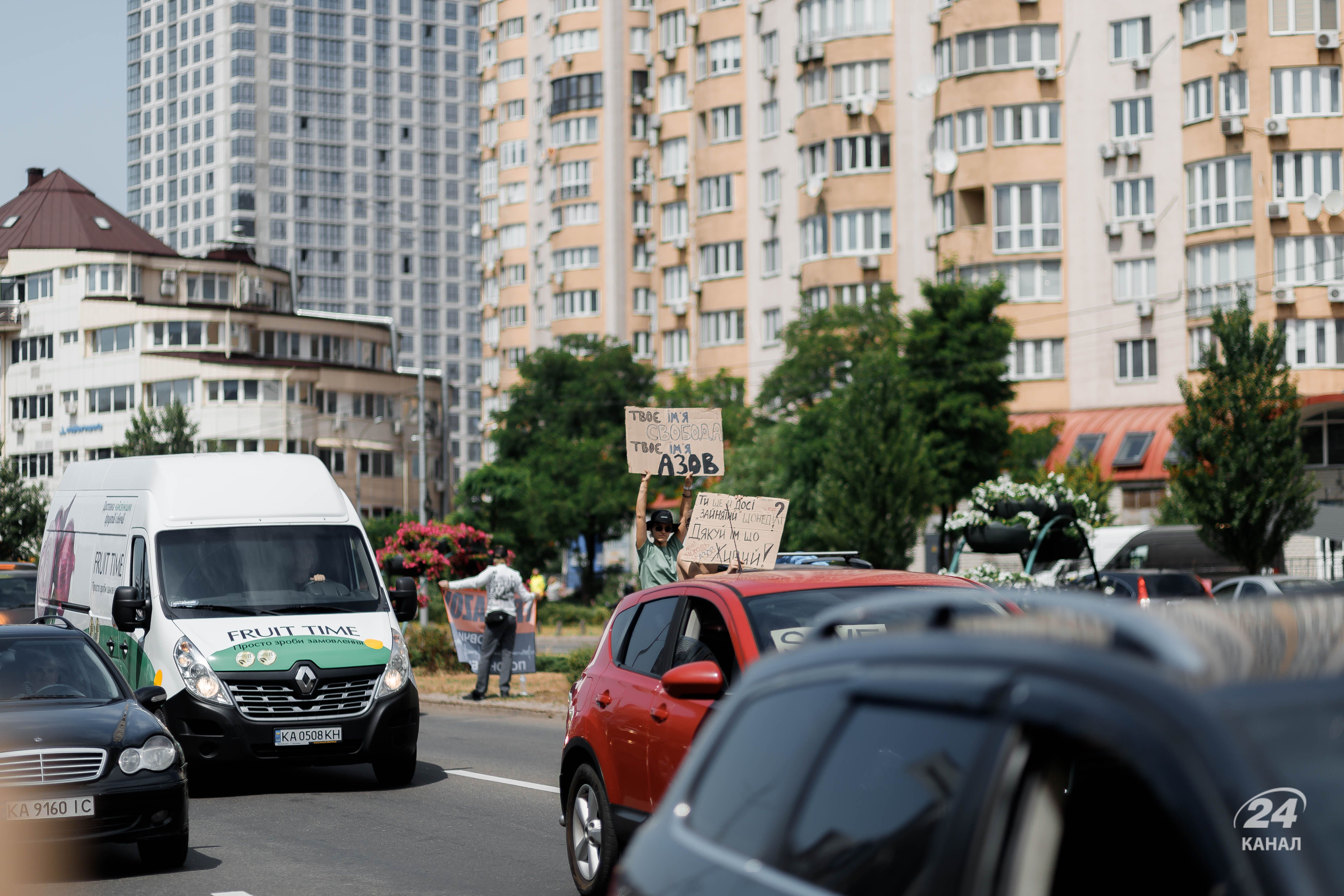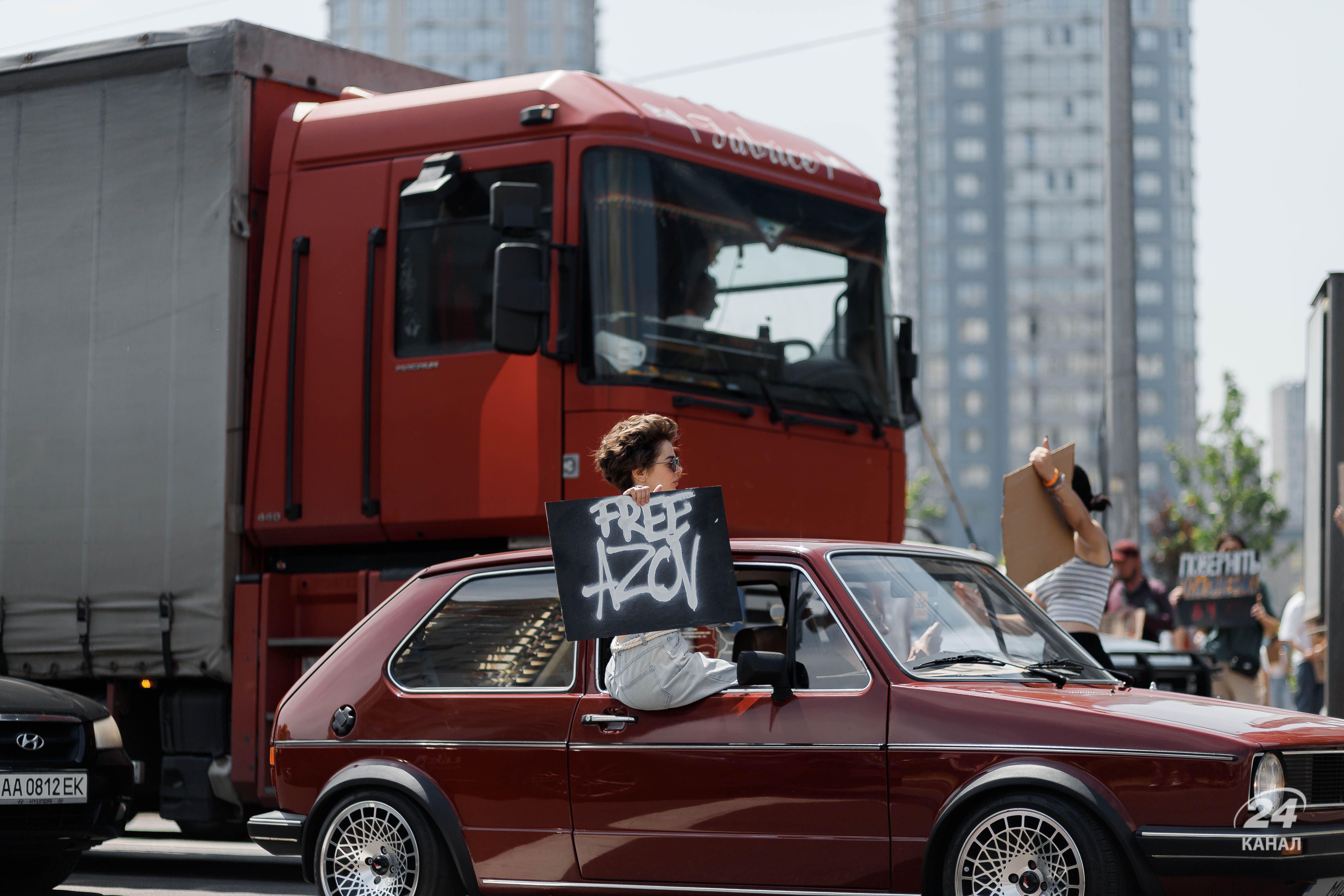Учасники акції стояли з плакатами у руках. До демонстрації долучилися також і водії, які також виступали із закликом звільнити військовополонених бійців "Азову".