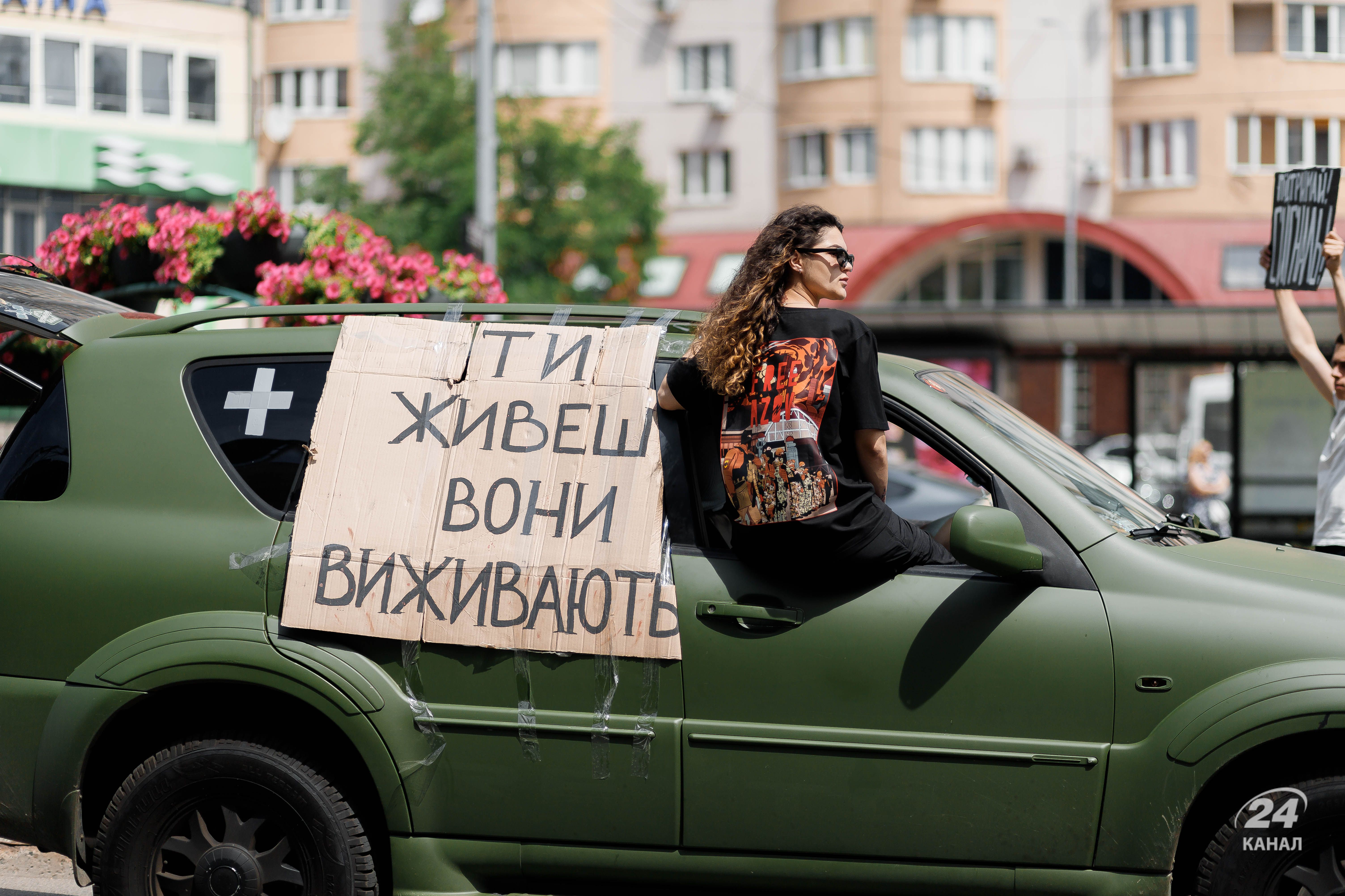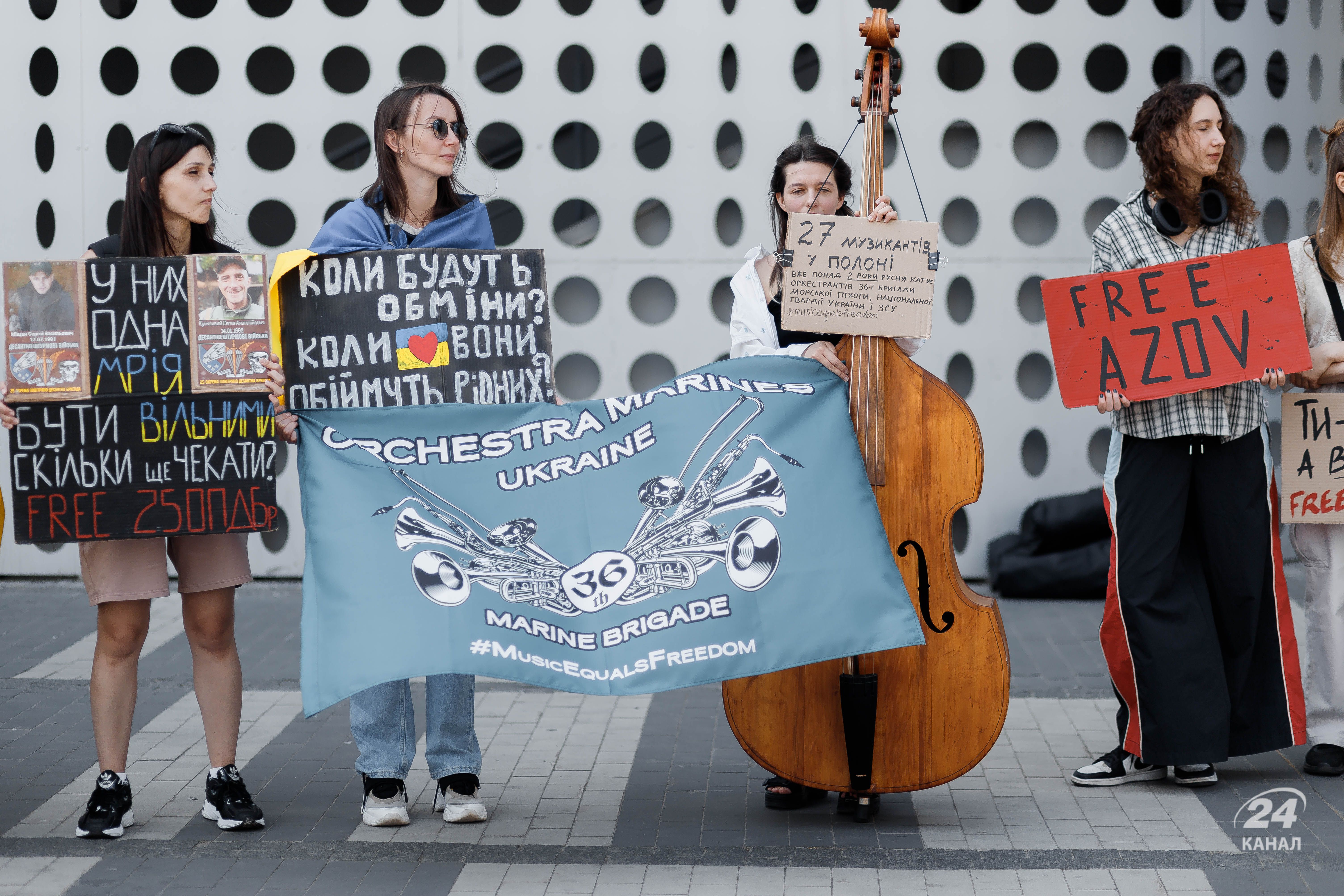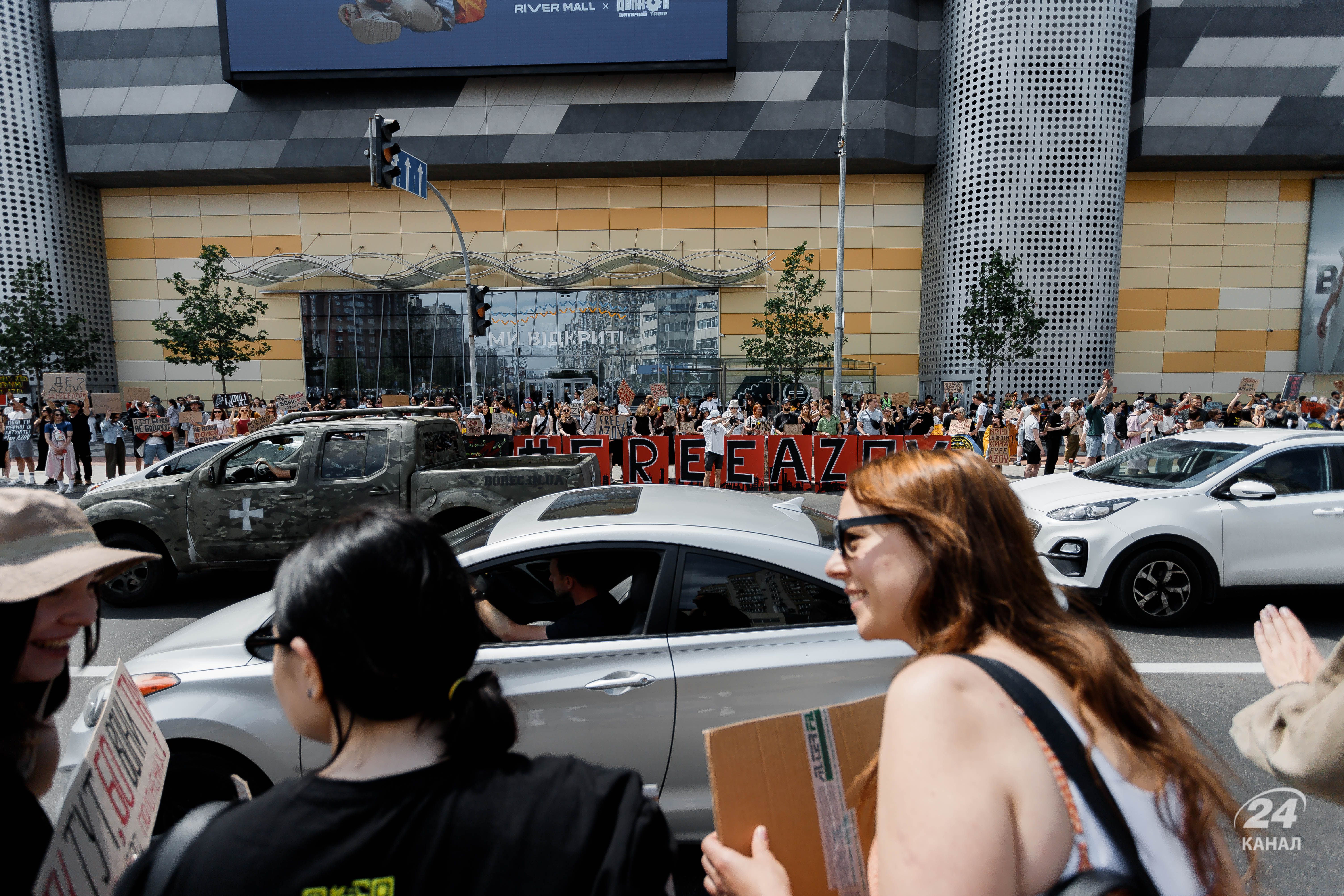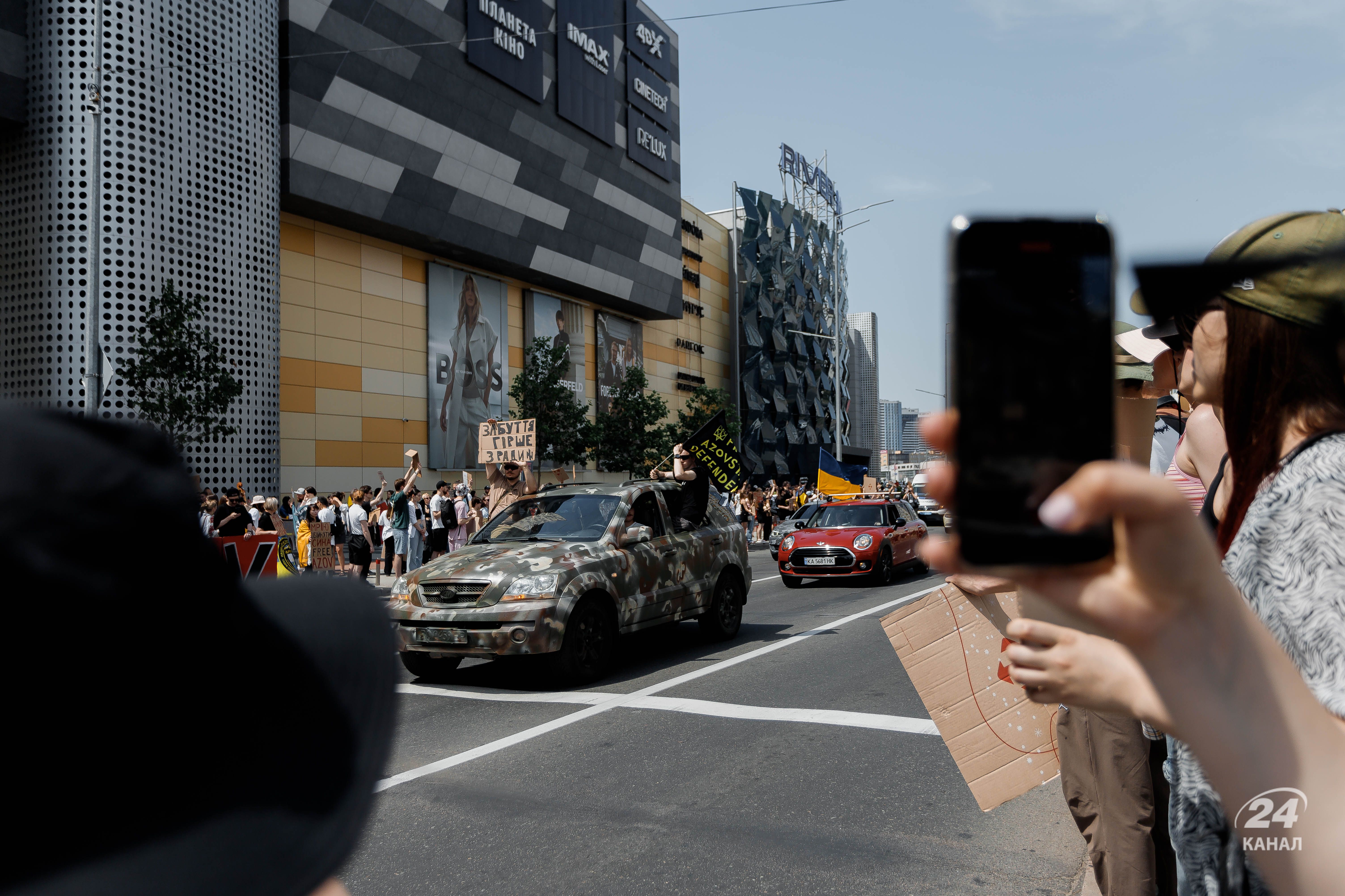 Учасники акції стояли з плакатами у руках. До демонстрації долучилися також і водії, які також виступали із закликом звільнити військовополонених бійців "Азову".