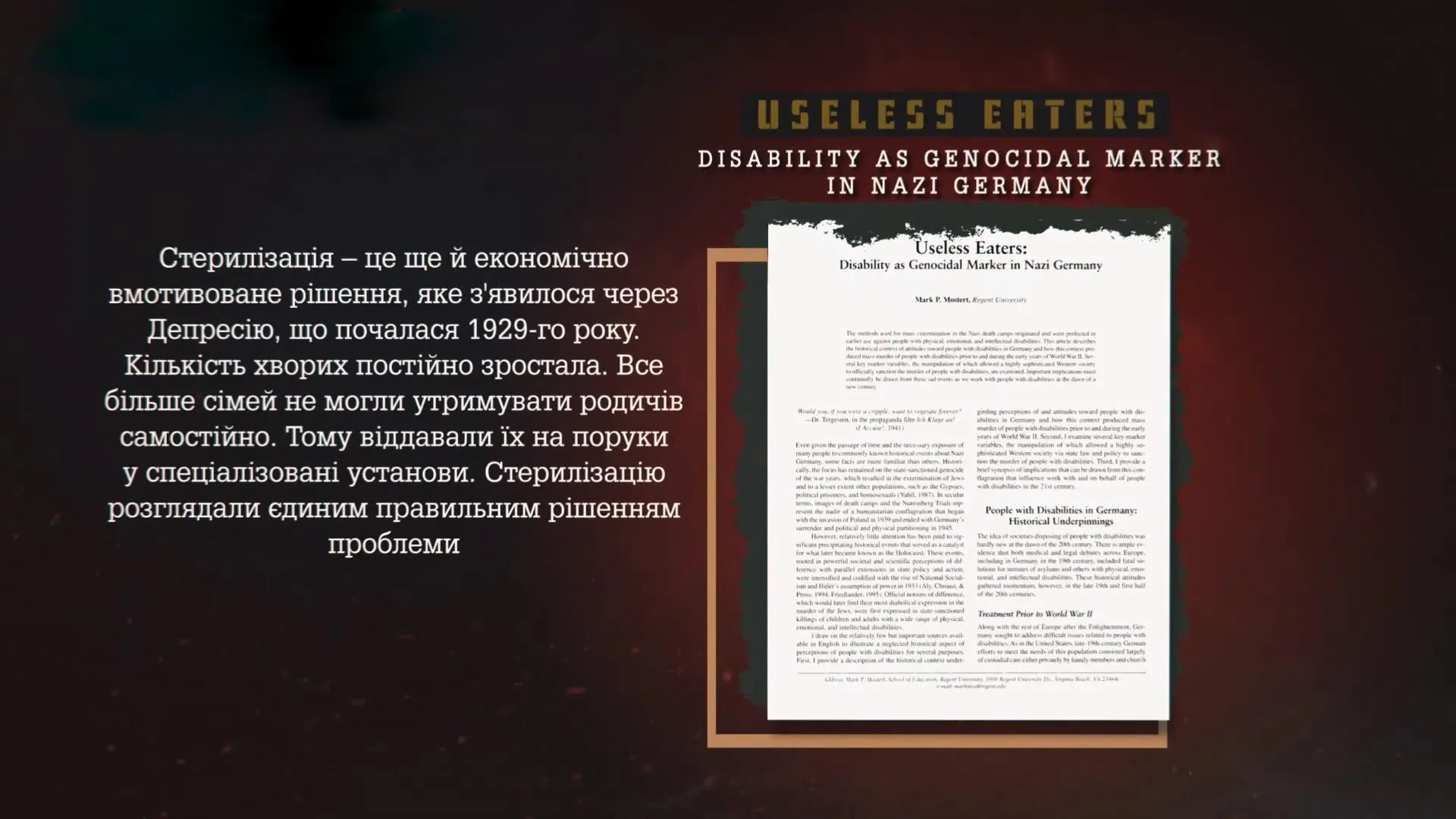 Спеціальна комісія визначала долю пацієнта. Пізніше стане відомо, що з 1933 по 1945 роки німці позбавили можливості продовжувати рід близько 400 тисяч людей.