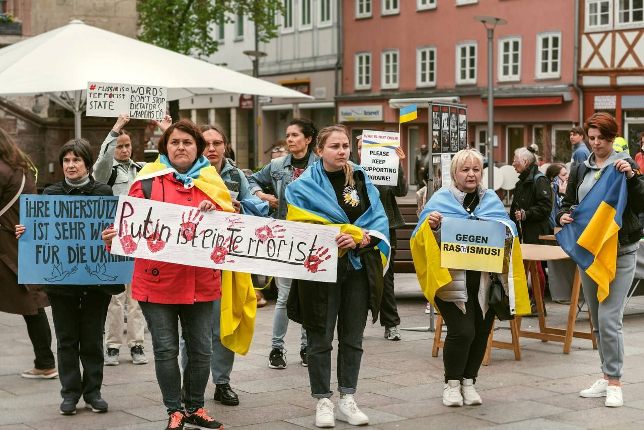 У десятках міст світу на різних континентах тривають акції на підтримку України з нагоди річниці завершення Другої світової війни. Гасло "Ніколи знову" замінила реальність – "знову війна".
