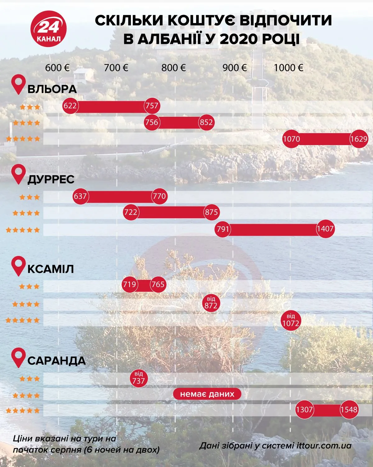 Скільки коштує відпочинок в Албанії / Інфографіка 24 каналу